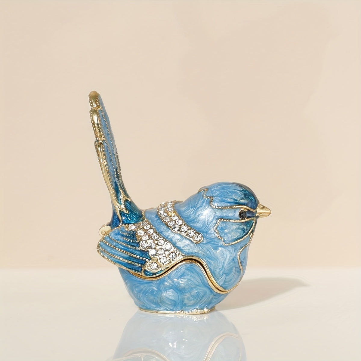 Органайзер для украшений в виде раскрашенной птицы с крышкой на петлях для колец и серег