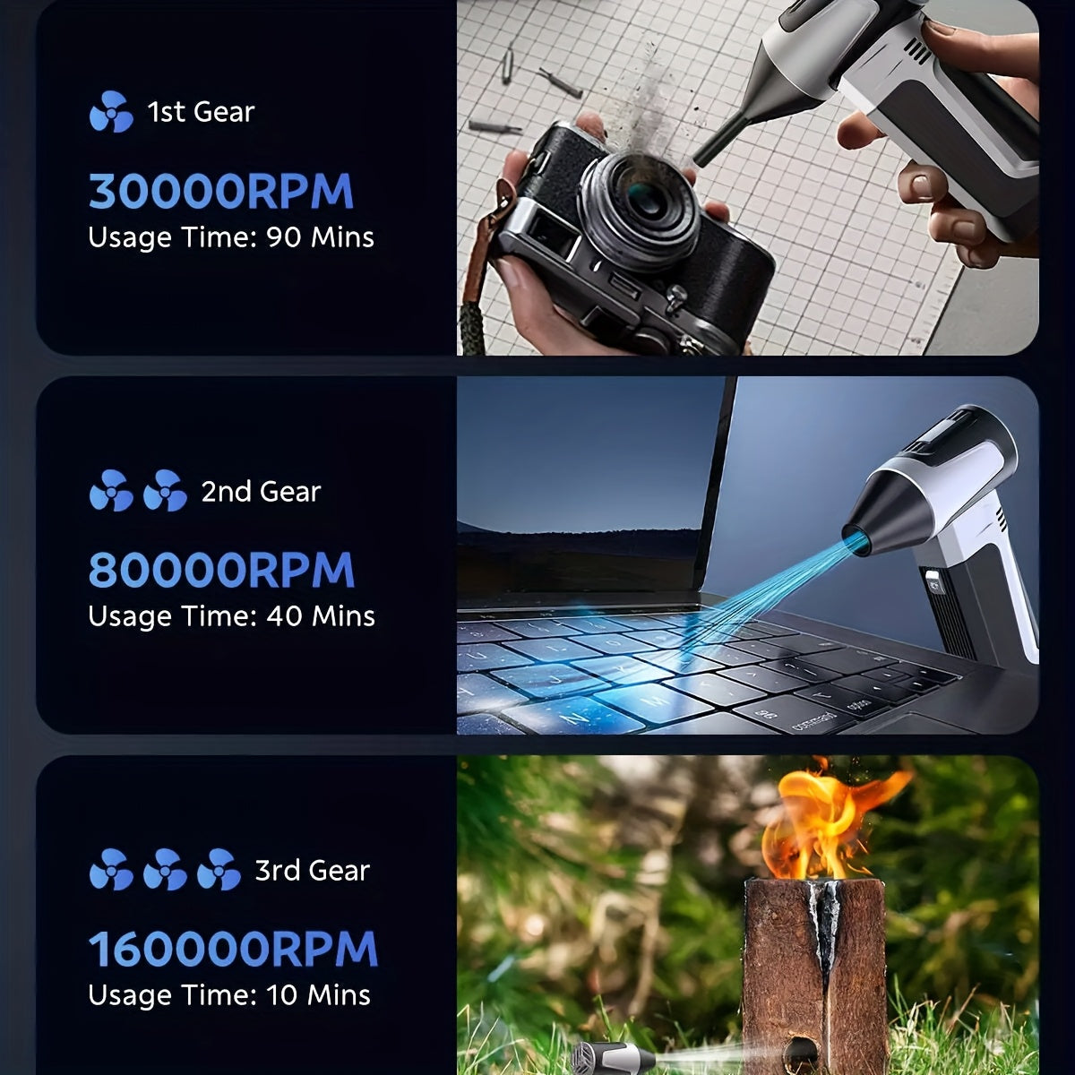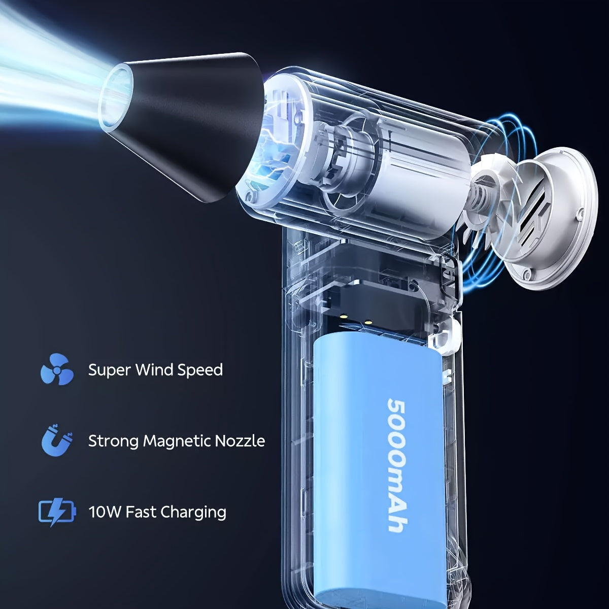 Ручной турбовентилятор 160 000 об/мин бесщеточный мотор USB-C перезаряжаемый портативный