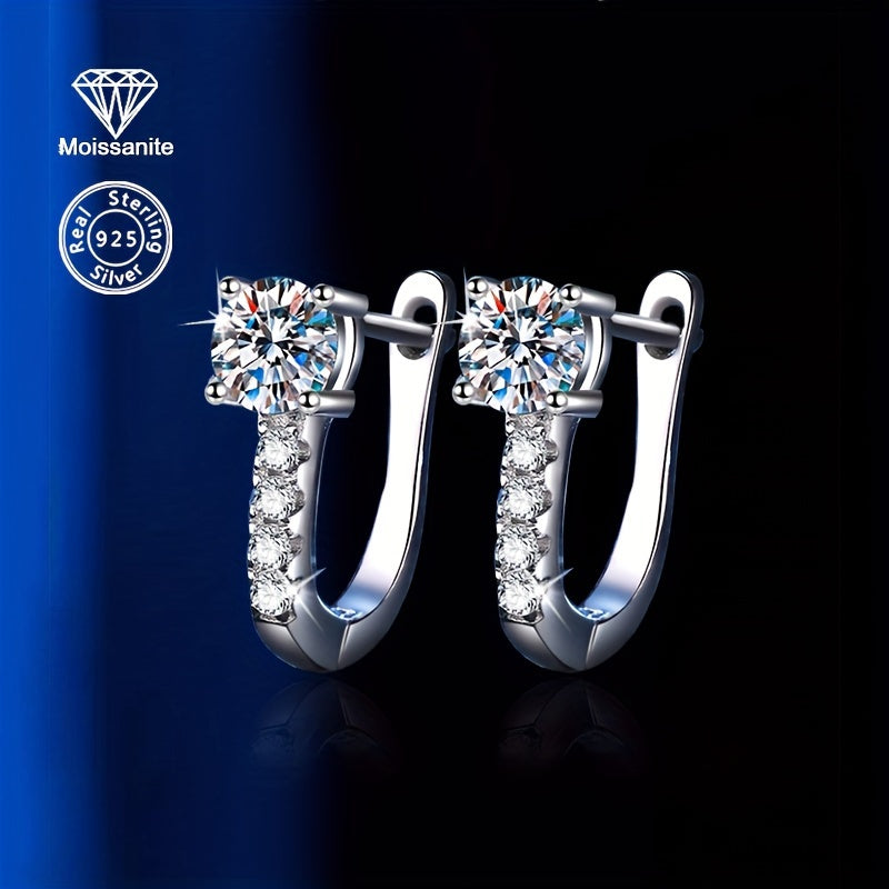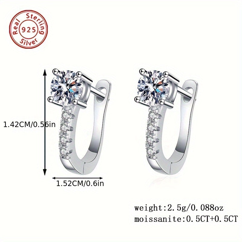 Два камня моиссанита по 1 карат, установленные в серьгах из серебра 925 пробы, сверкающие украшения для женщин, идеальный подарок на День матери, подходят для повседневной носки, вес: 2.5 г/0.088 унции