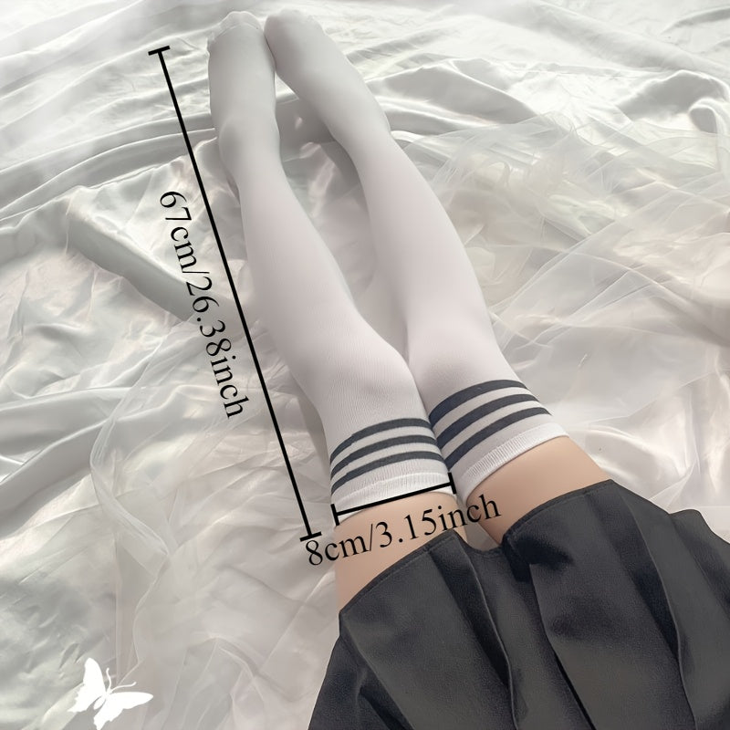 Двухпарные унисекс носки в преппи-стиле выше колена, изготовленные из высокоэластичного полиэстерового трикотажного материала для взрослых. Ручная стирка.