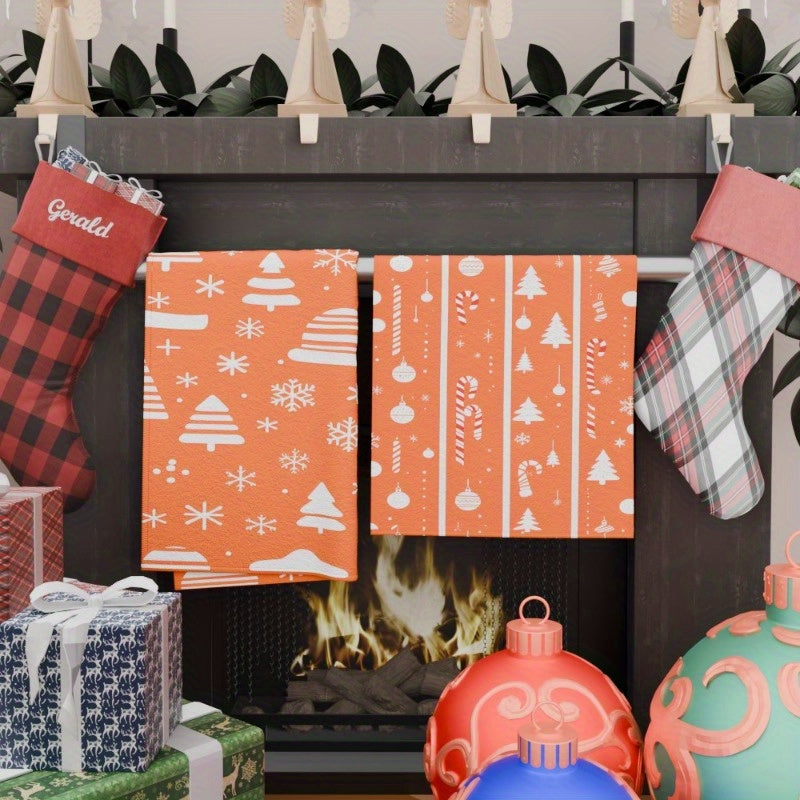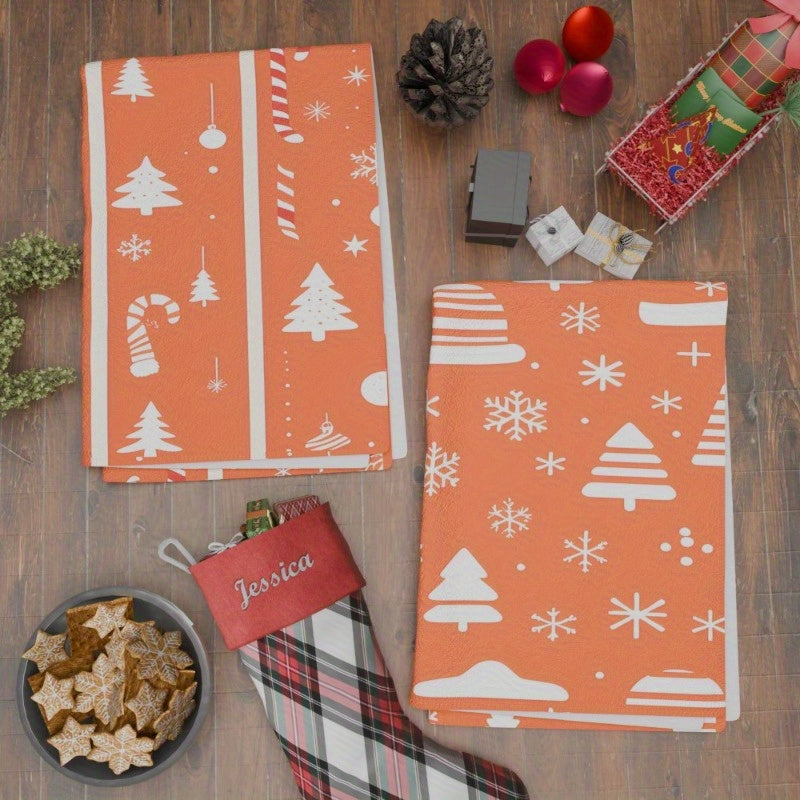 Два полотенца для кухни размером 18*26, идеально подходящие для создания праздничной атмосферы на вашей кухне в рождественский сезон. Изготовленные из мягкого материала, эти полотенца имеют зимнюю тематику с снежинками и надписью "С Рождеством".