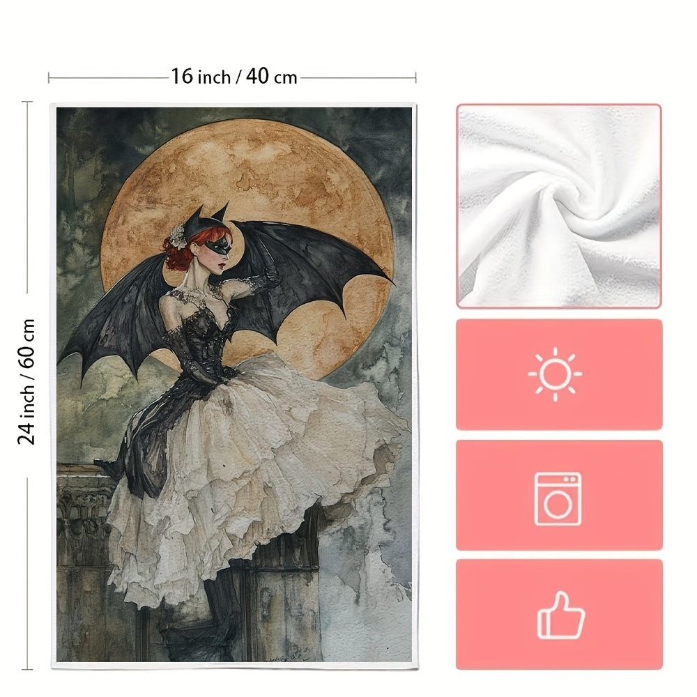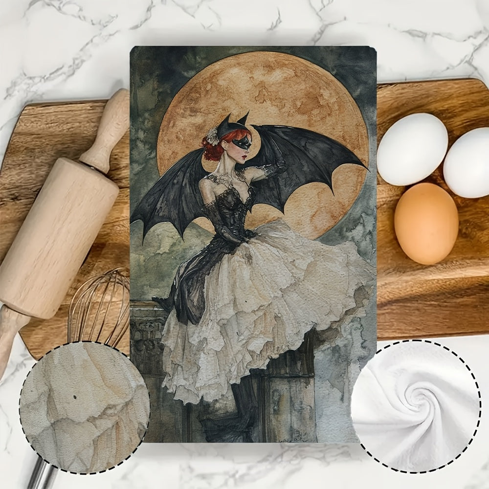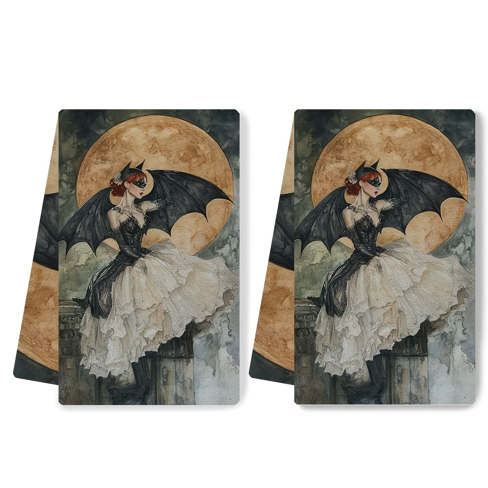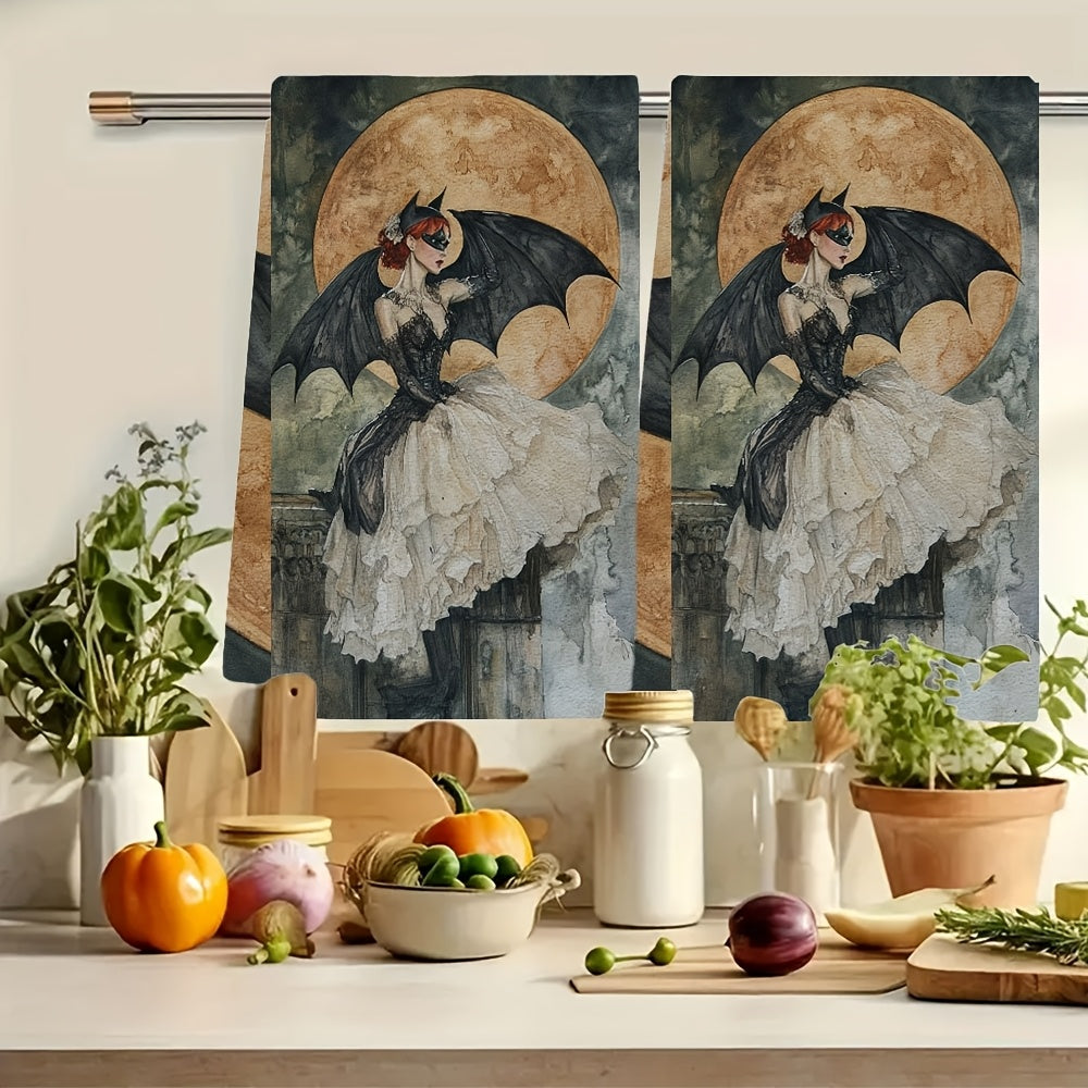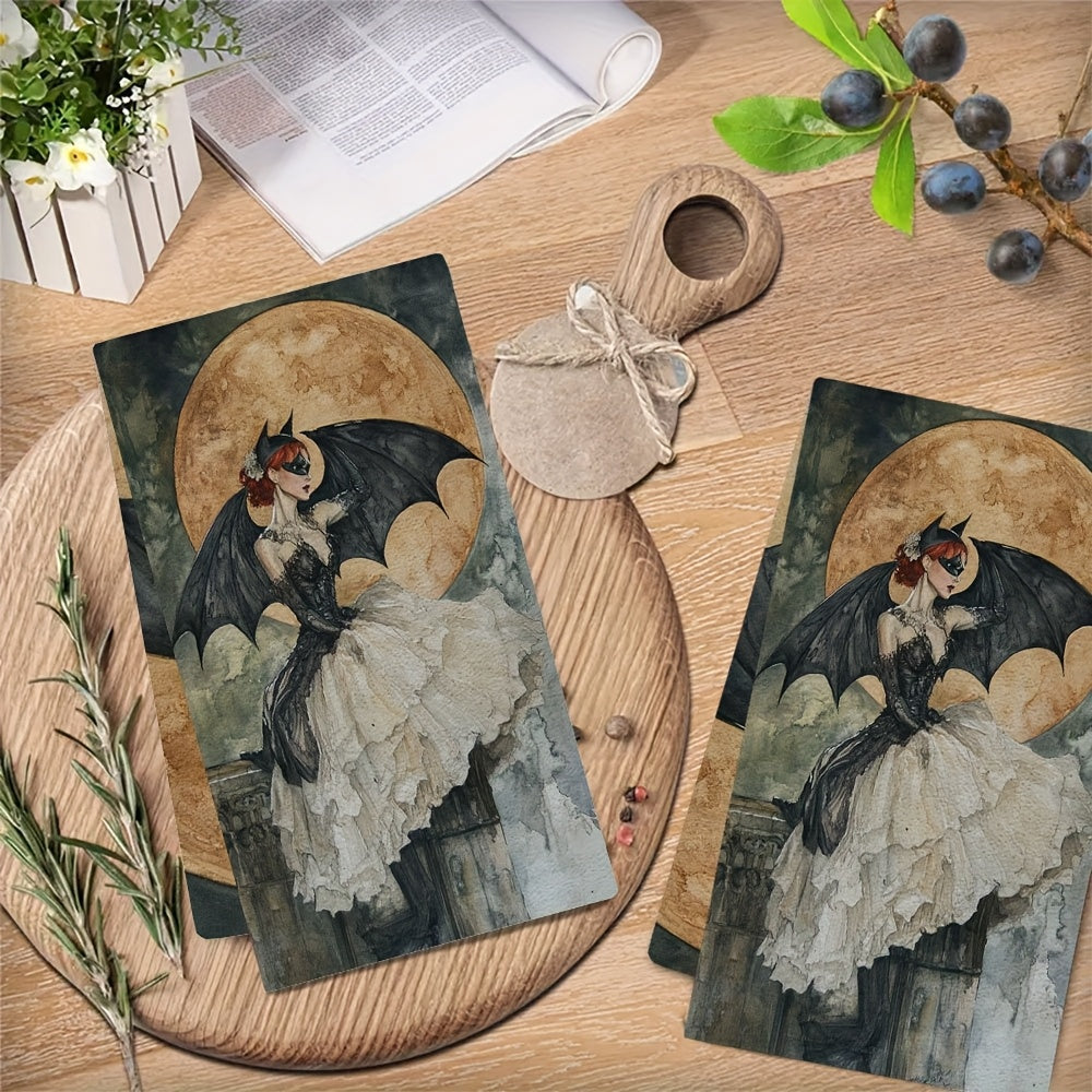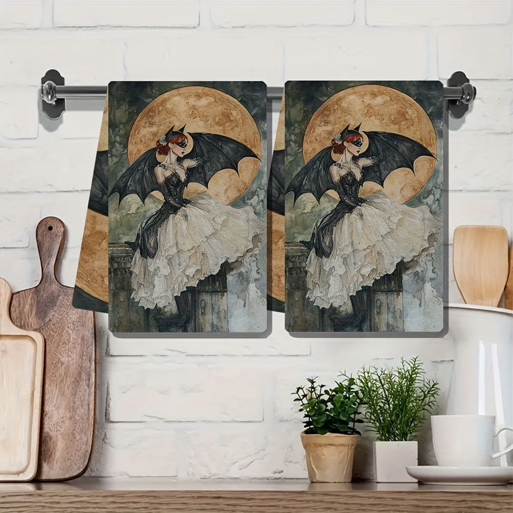 Набор из 2 кухонных полотенец с готическими летучими мышами-женщинами, ультра мягкие, впитывающие, 40x60 см