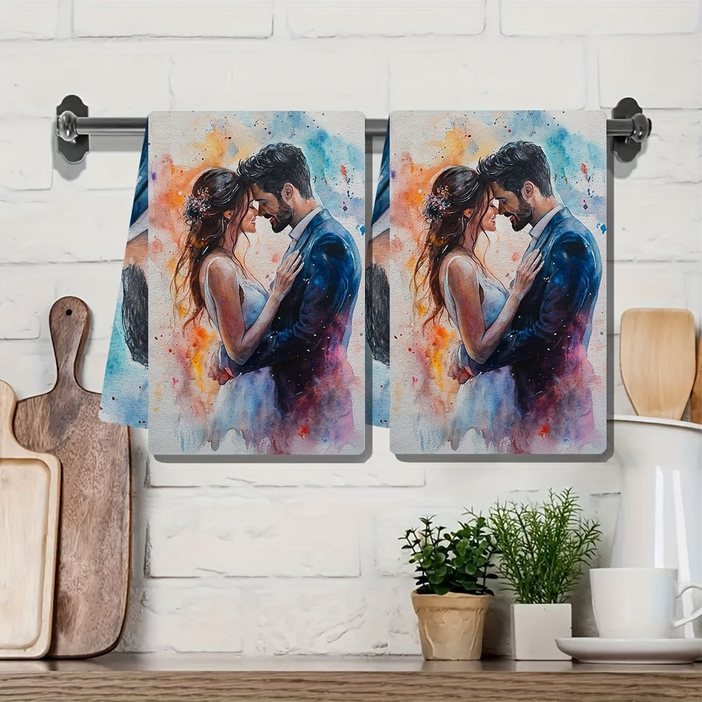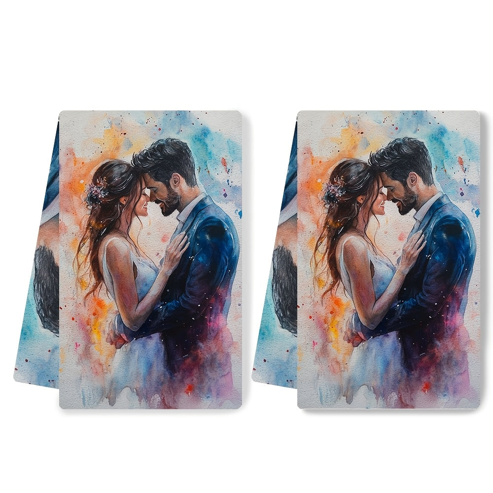 Романичные кухонные полотенца для пары в акварельном стиле, 2 шт., ультра мягкие, впитывающие, 40x60 см