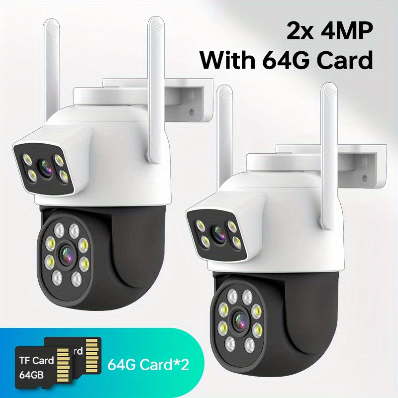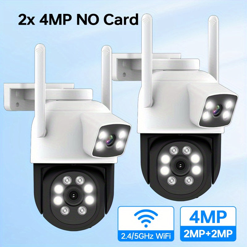Комплект видеокамер безопасности с двумя объективами 4МП WiFi, водонепроницаемые, ночное видение, обнаружение движения, двусторонний звук