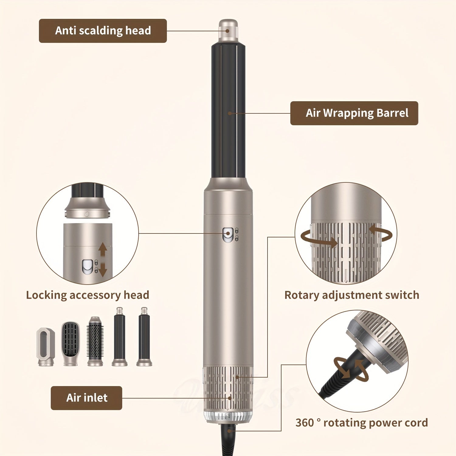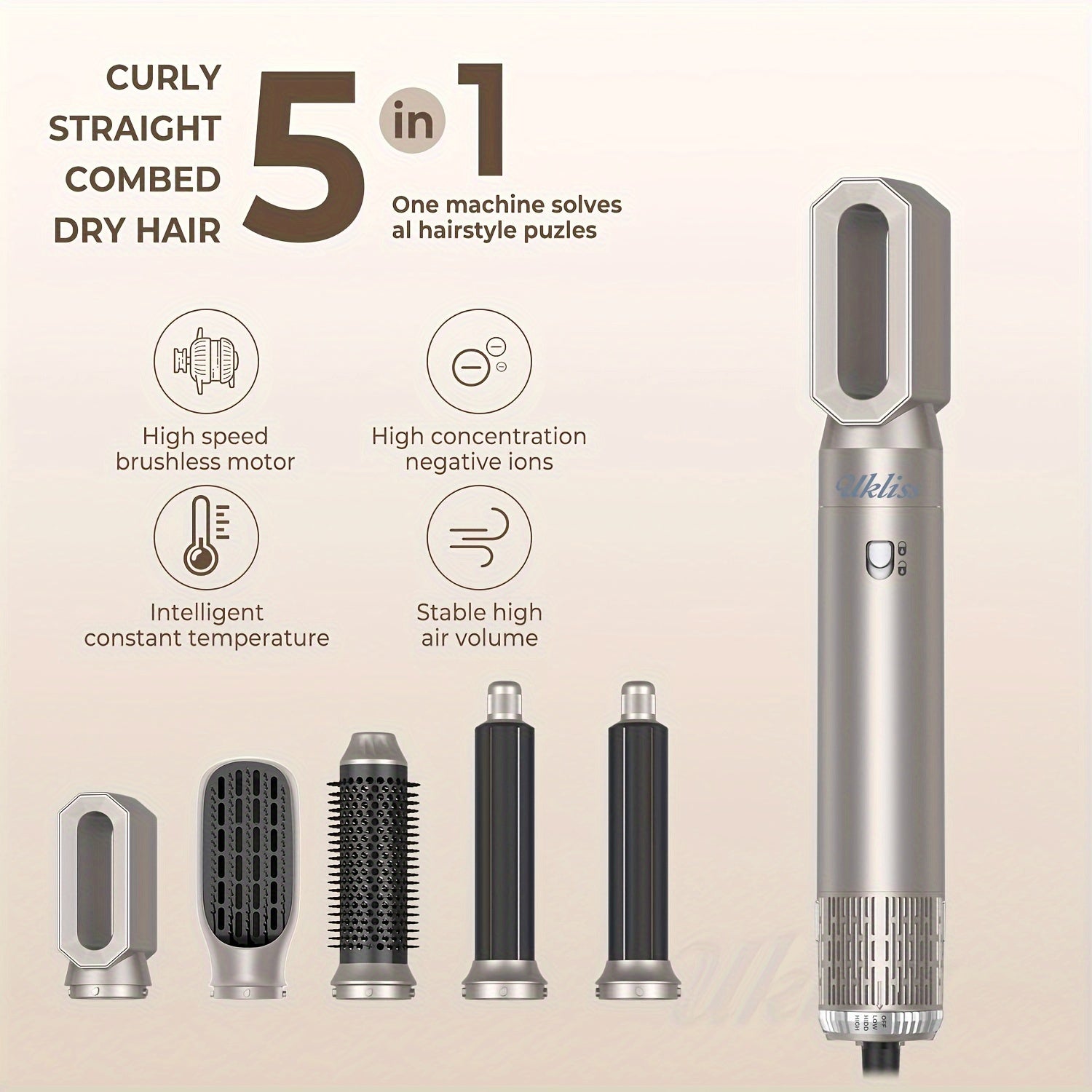 5 в 1 Устройство для укладки волос: фен-щетка 900 Вт с отсоединяемым щипцами для завивки и технологией отрицательных ионов