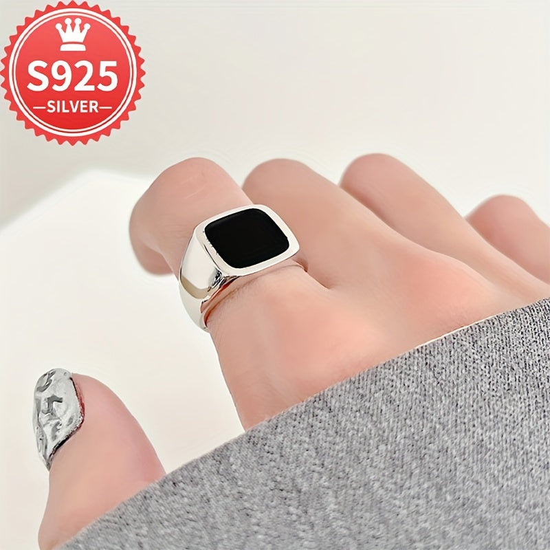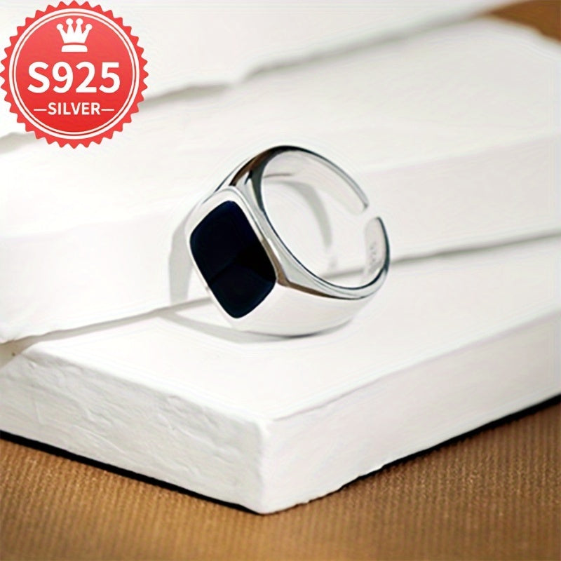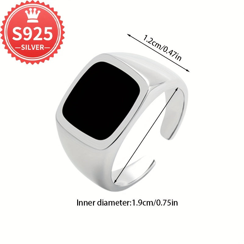 Унисекс кольцо широкое открытое черное квадратное глянцевое из 925 пробы гипоаллергенное, 4.6 г