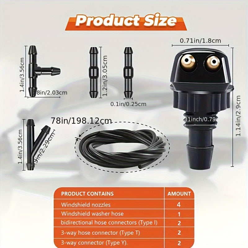 Универсальный комплект форсунок омывателя лобового стекла автомобиля, прочная шланг, несколько соединителей