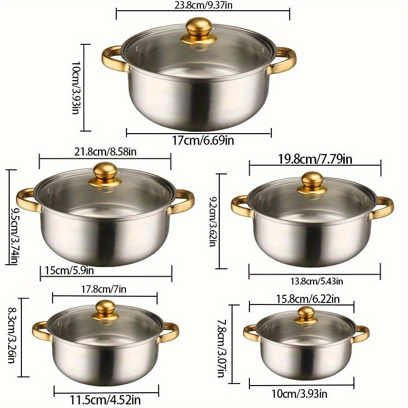 Набор посуды из нержавеющей стали из 10 предметов с крышками для супа, рагу и лапши