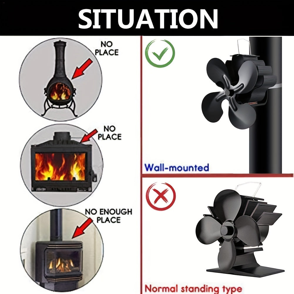 Тепловой вентилятор для камина с 4 лопастями для бесшумного распределения тепла