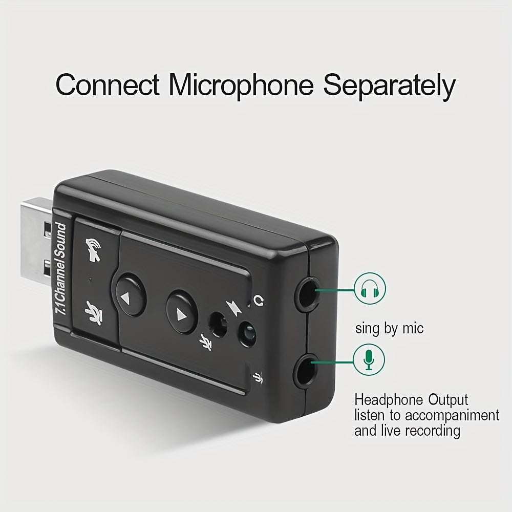 USB 2.0 Внешний адаптер звуковой карты 7.1-канальный с микрофоном для ноутбуков и настольных ПК, драйвера не требуются, черный, включает программное обеспечение Xear 3D Simulation для Windows XP/Vista.