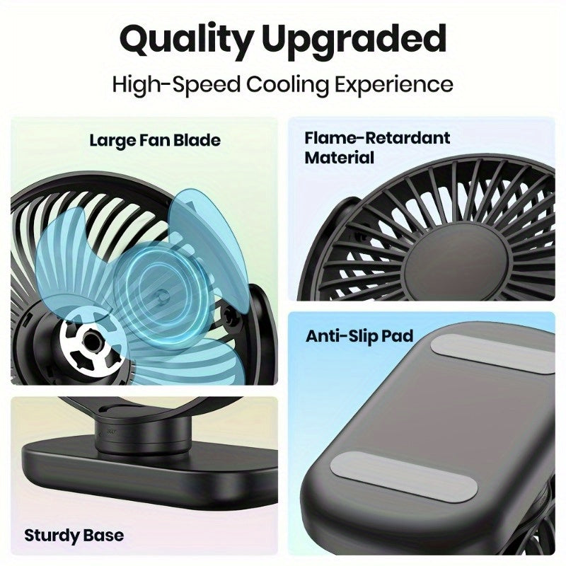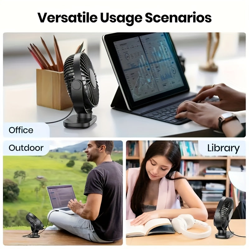 USB-клипсовой настольный вентилятор с бесщеточным мотором для тихого и мощного воздушного потока. Портативный охлаждающий вентилятор для спальни и офиса. Универсальный крепеж, стильный черный цвет, прочный клипсовой дизайн без батареи.