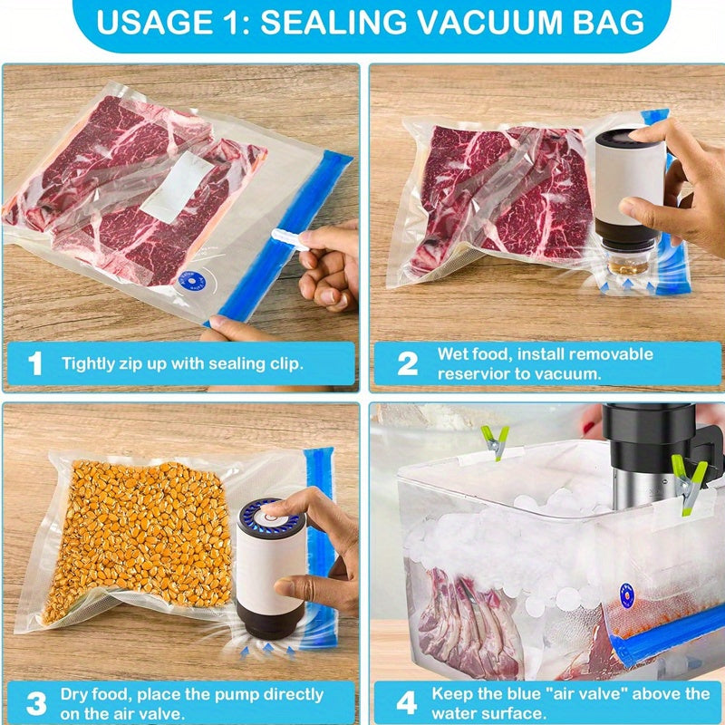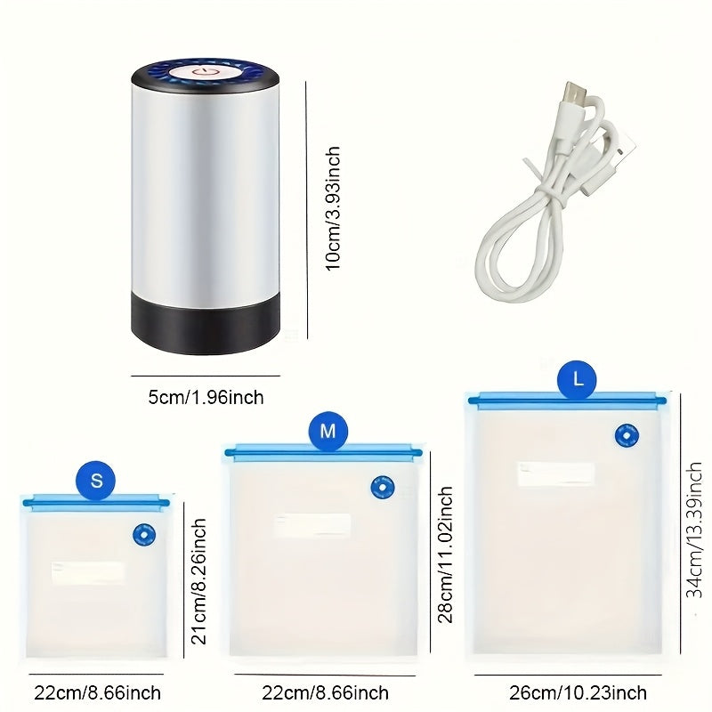 Перезаряжаемый портативный вакуумный упаковщик для продуктов с 3 размерами пакетов, портативный для фруктов и овощей