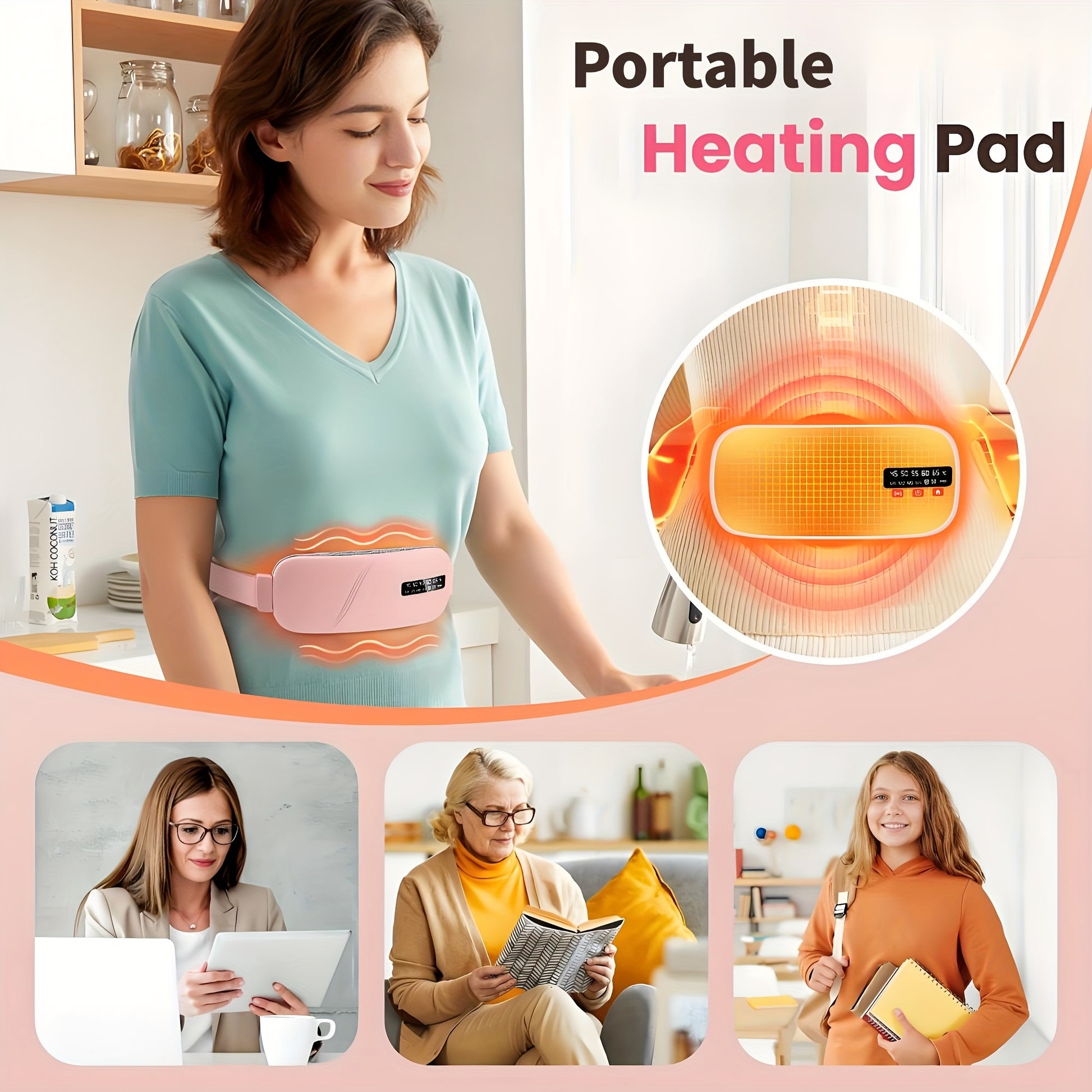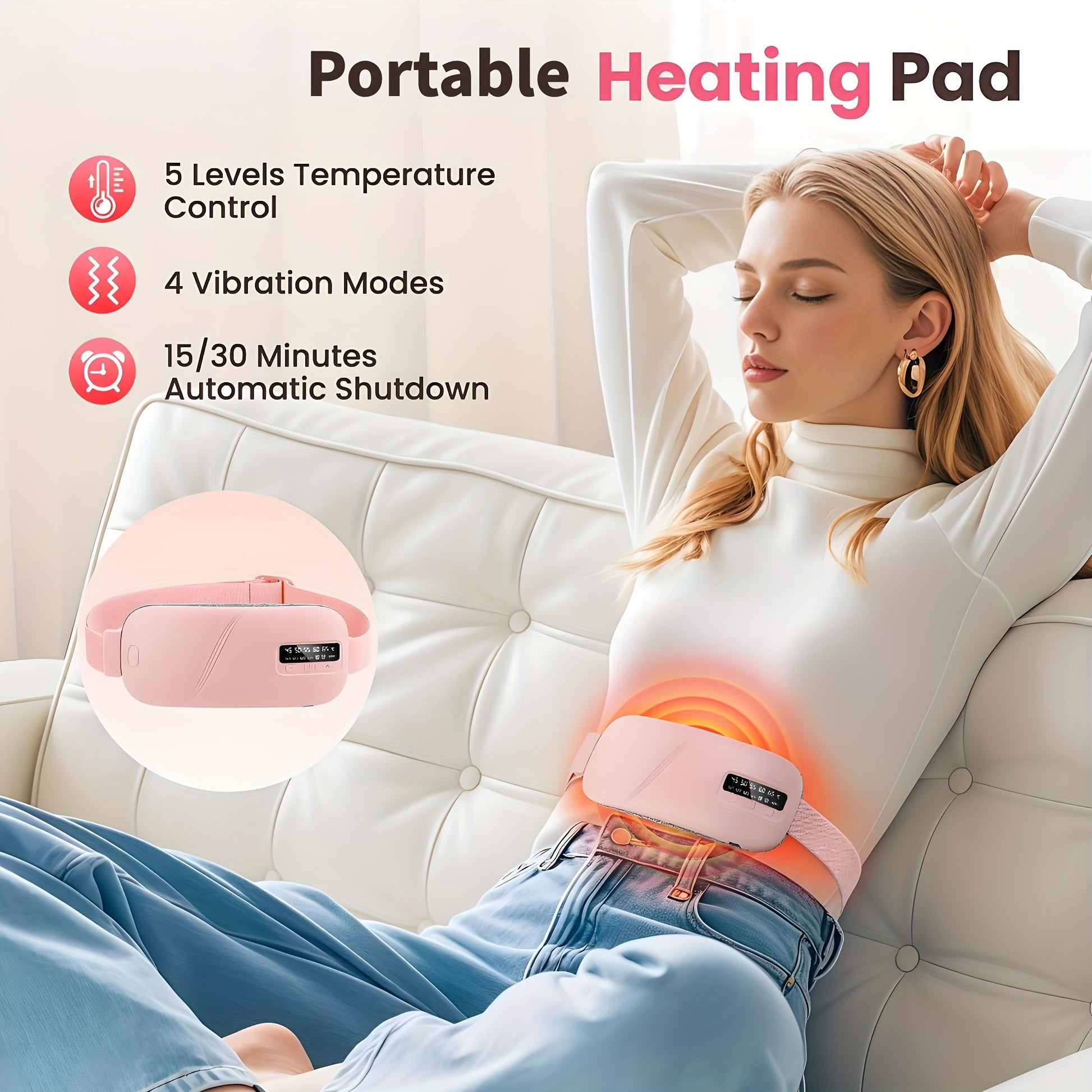 Перезаряжаемый USB нагревающий пояс для женщин с 3 настройками температуры, 4 режимами массажа и быстрым нагревом живота, идеальный подарок.