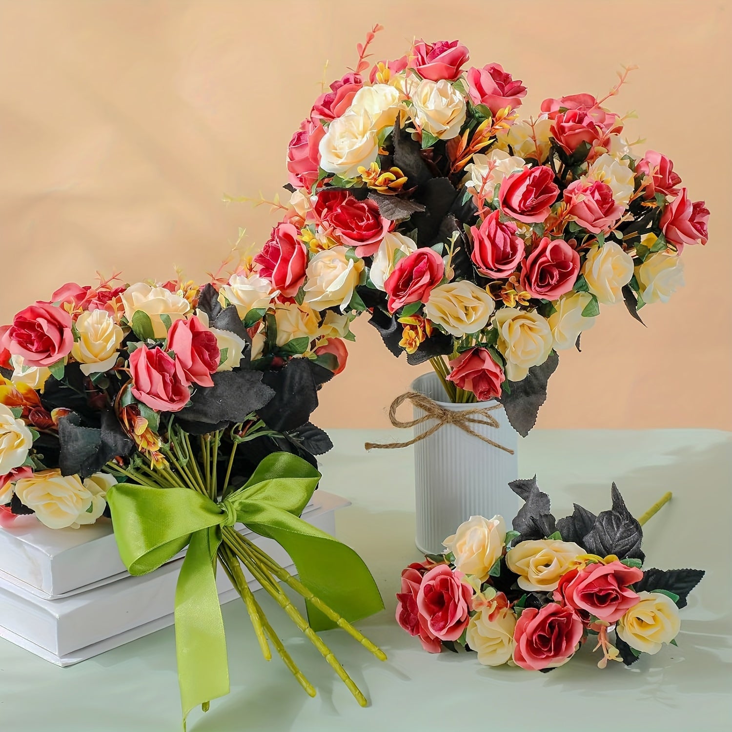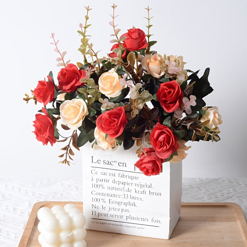 Устойчивый к УФ-излучению искусственный букет роз, идеальный для весны, Дня святого Валентина, свадеб, декора дома и офиса, а также для празднований на открытом воздухе в саду.
