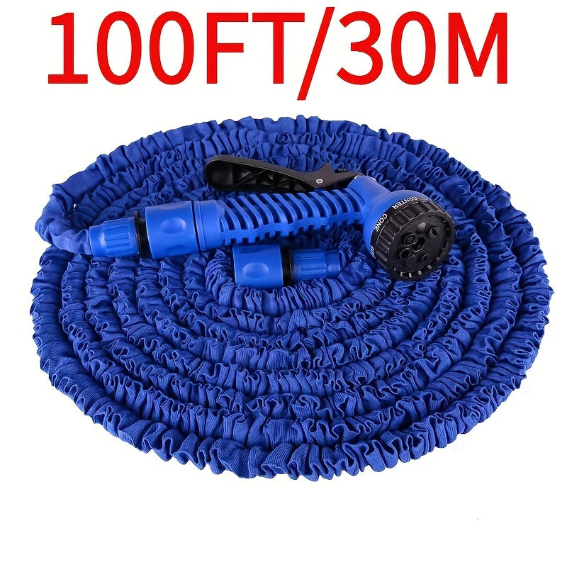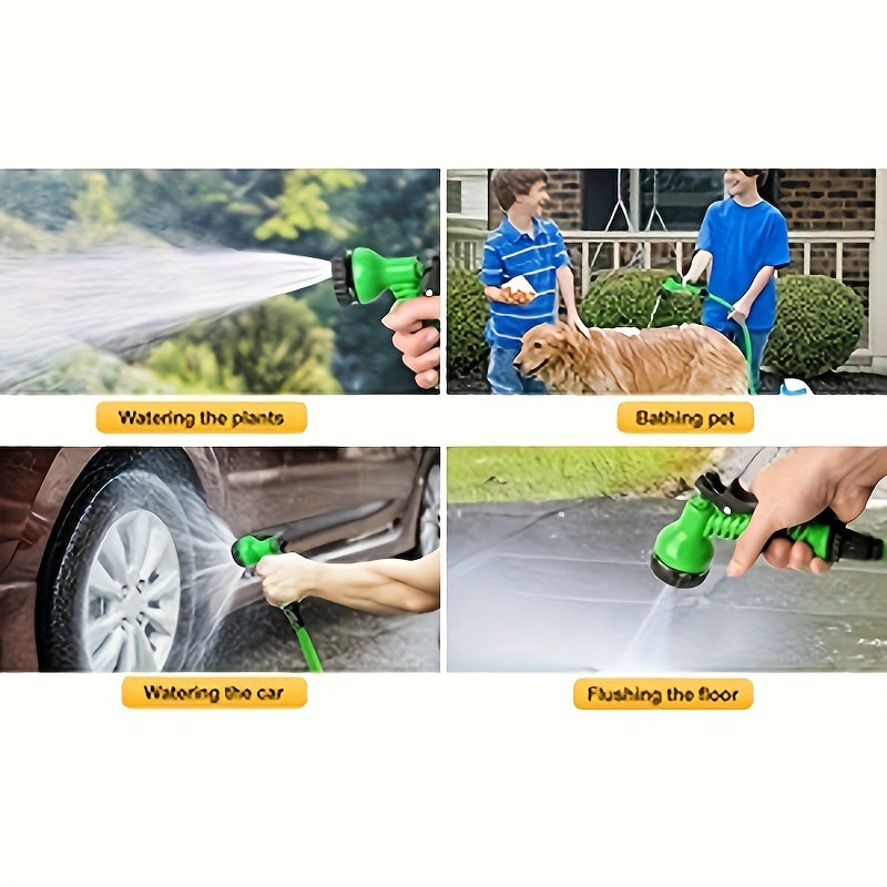 Универсальный выдвижной садовый шланг с распылителем, прочный резиновый материал для мойки автомобилей под высоким давлением и орошения. Совместим со стандартами резьбы в Европе и Америке, доступен в