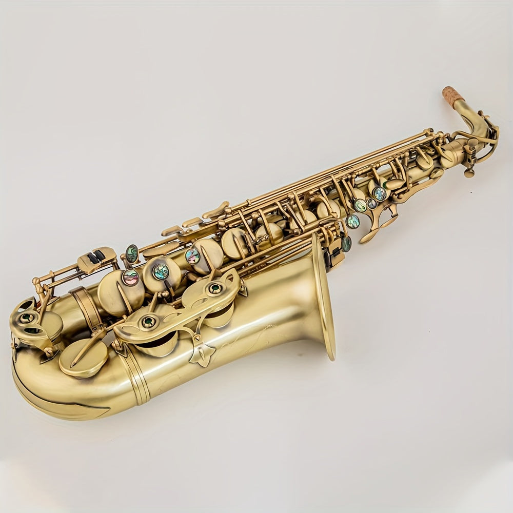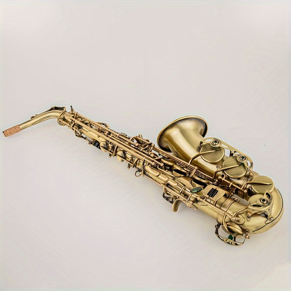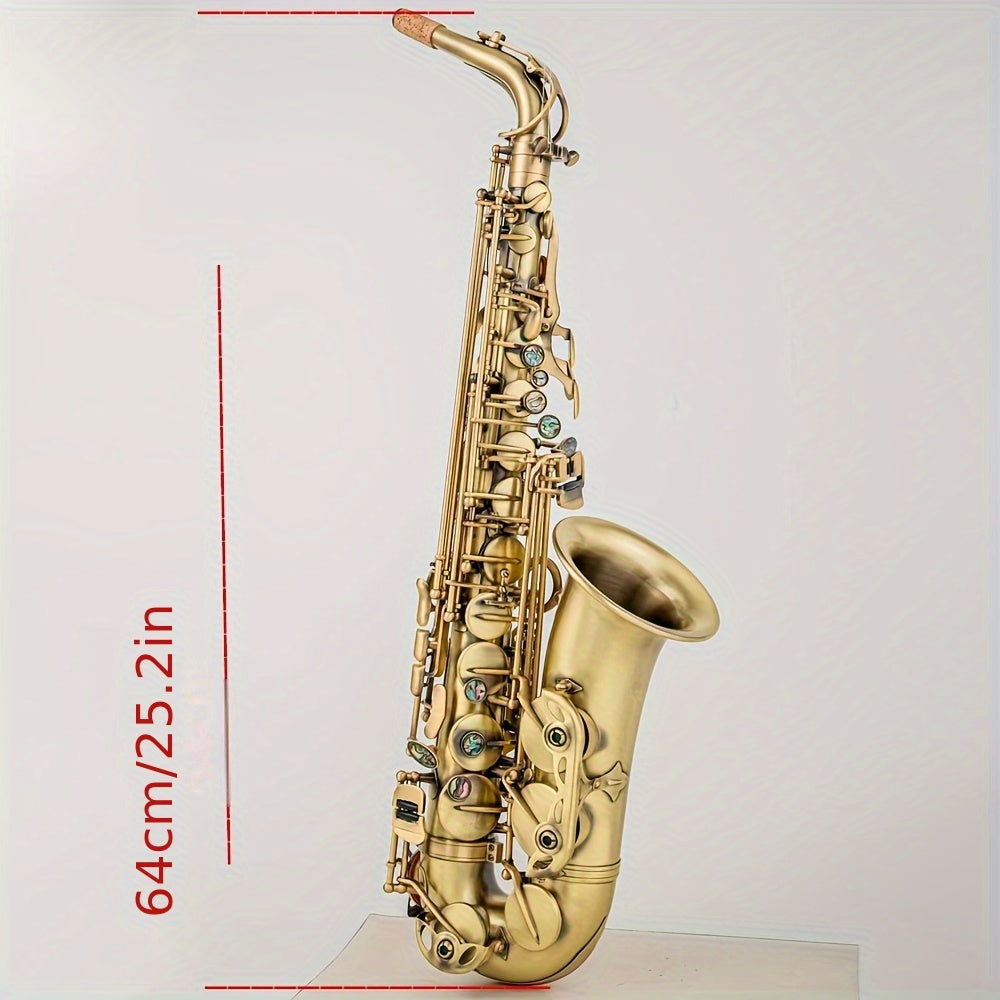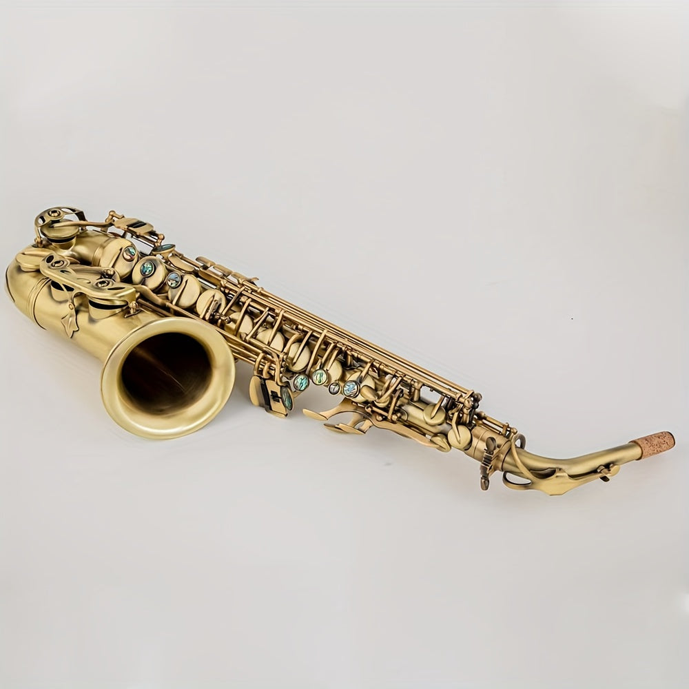Винтажный бронзовый альт-саксофон с отделкой, включает в себя абалоновые клавиши, кейс, ремень для шеи, чистящую тряпку, коробку для тростей и перчатки.