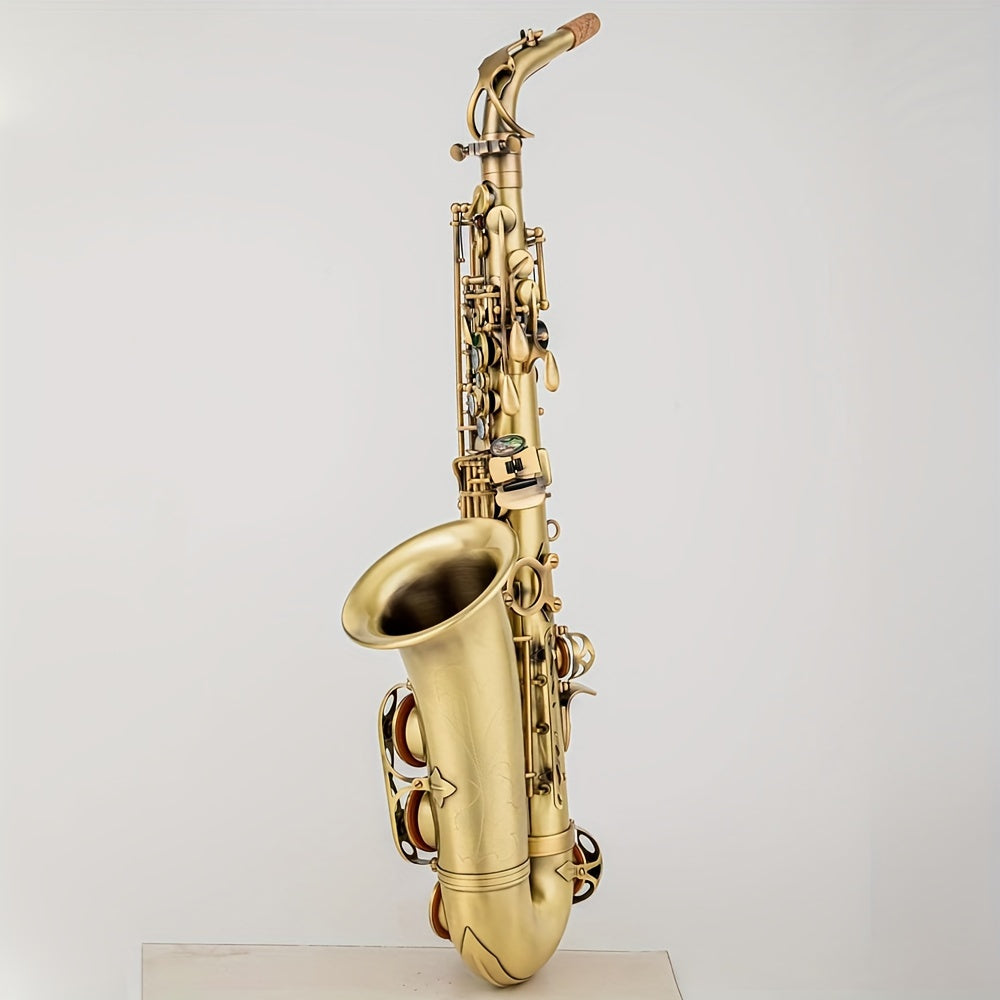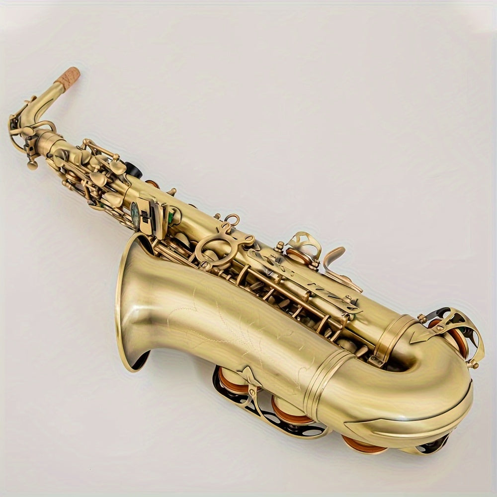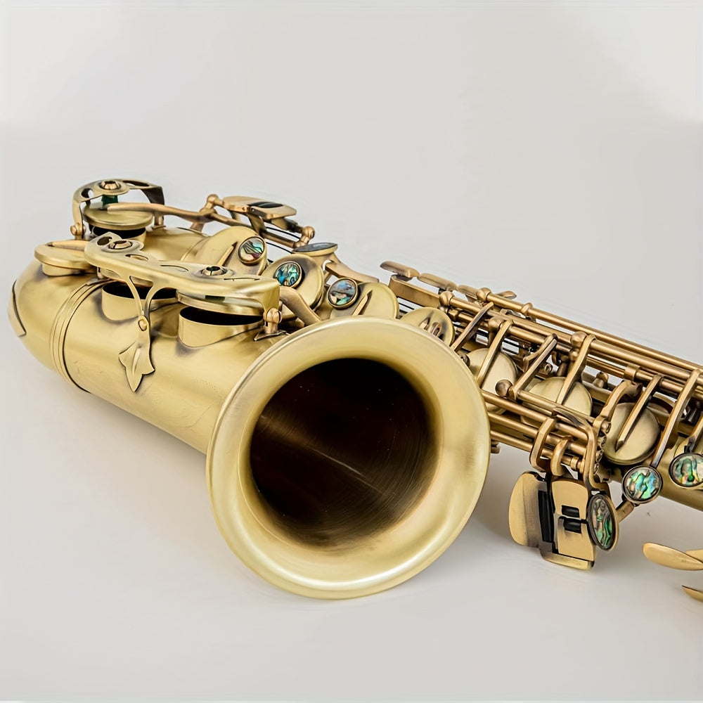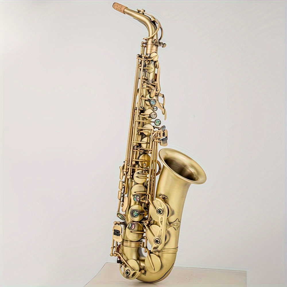 Винтажный бронзовый альт-саксофон с отделкой, включает в себя абалоновые клавиши, кейс, ремень для шеи, чистящую тряпку, коробку для тростей и перчатки.