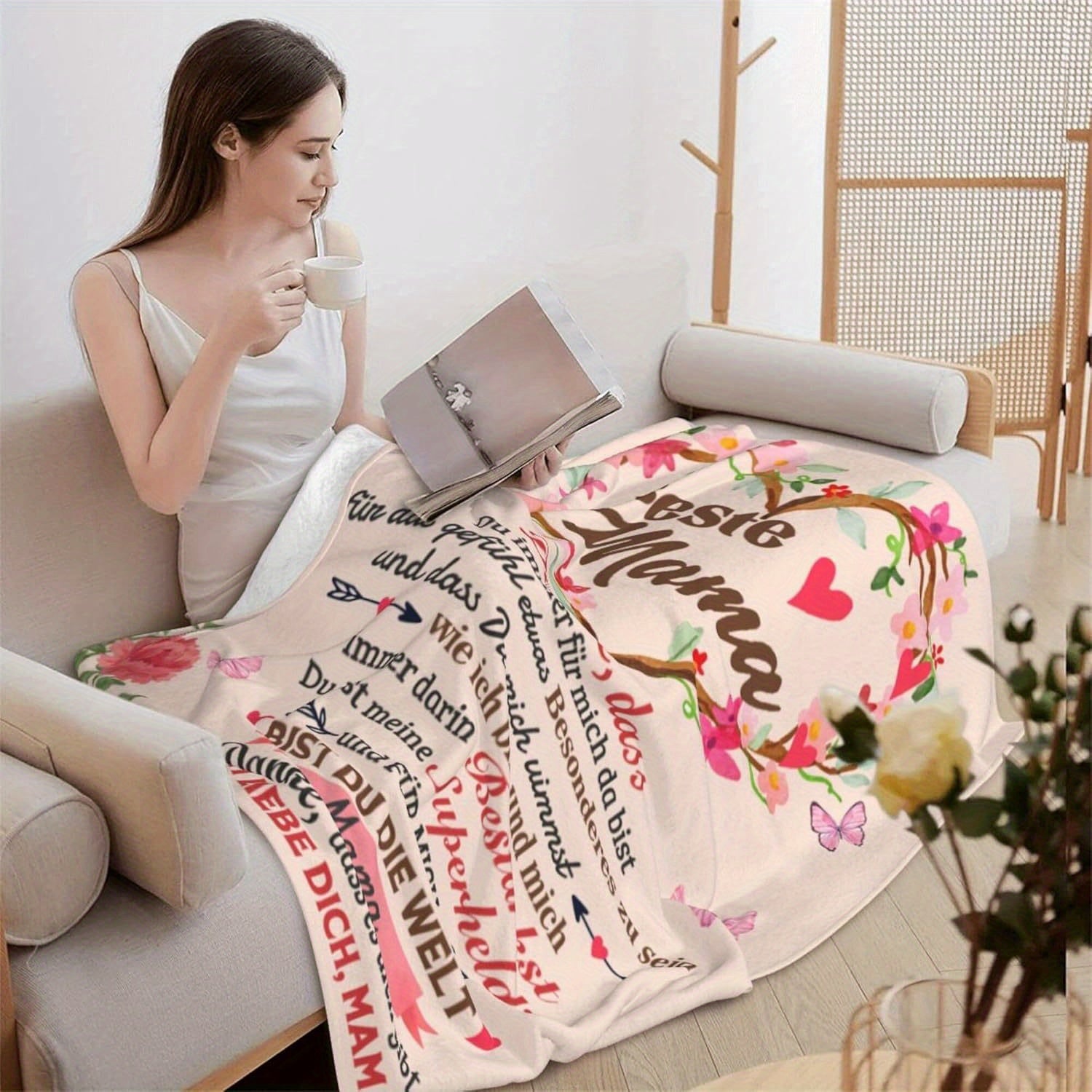 Vintage nemis yumshoq flanel yostiqchasi, barcha mavsumlar uchun to'qilgan raqamli bosma, yotoq, divan, TV uchun issiq, qulay, 165x127cm