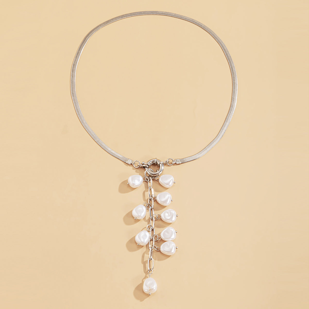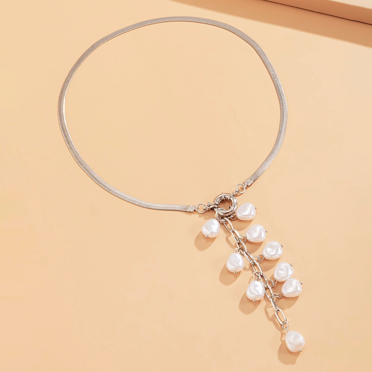 Кулон-ожерелье с кисточкой из искусственного жемчуга в винтажном стиле для женщин - Элегантная плоская змейка с камнем рождения декабря