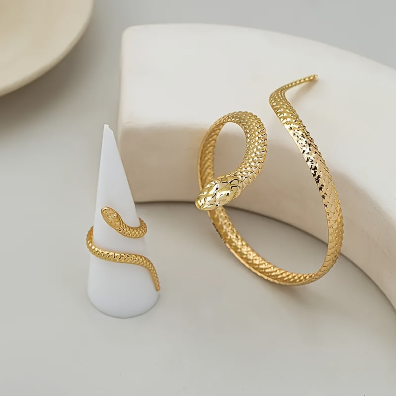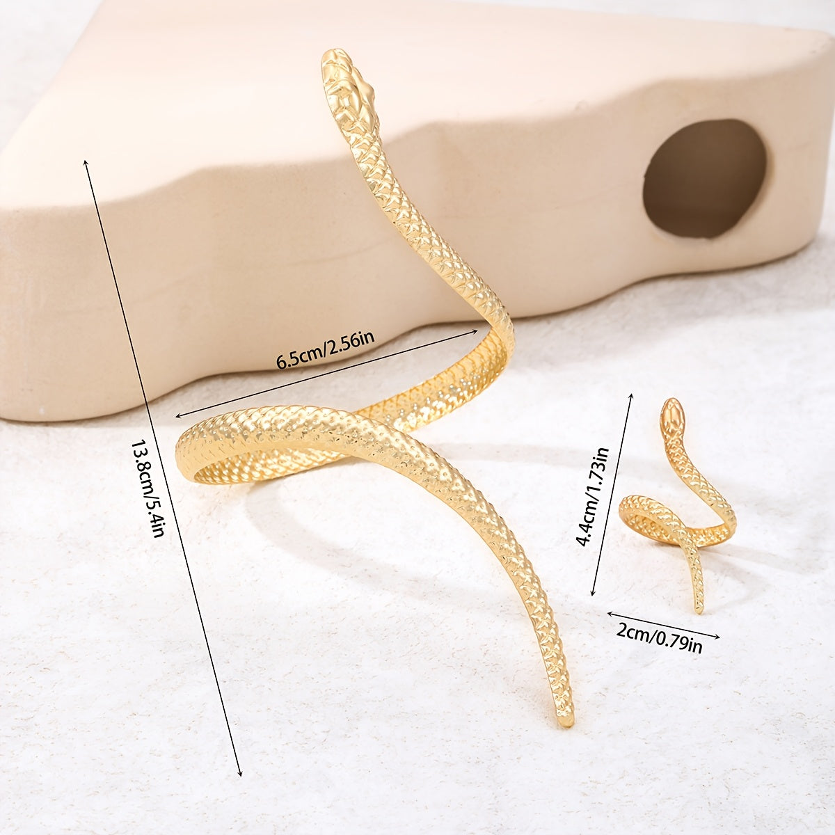 Винтажный панк браслет и кольцо в форме змеи, закрученный открытый браслет, стиль хип-хоп ретро, идеален для повседневной носки и вечеринок, материал - железо