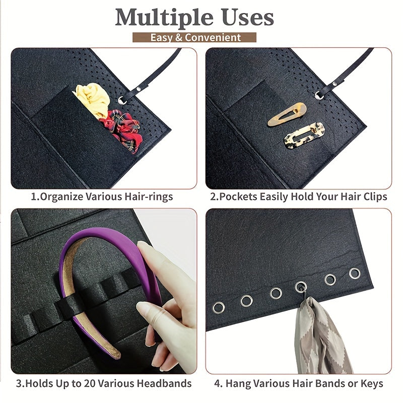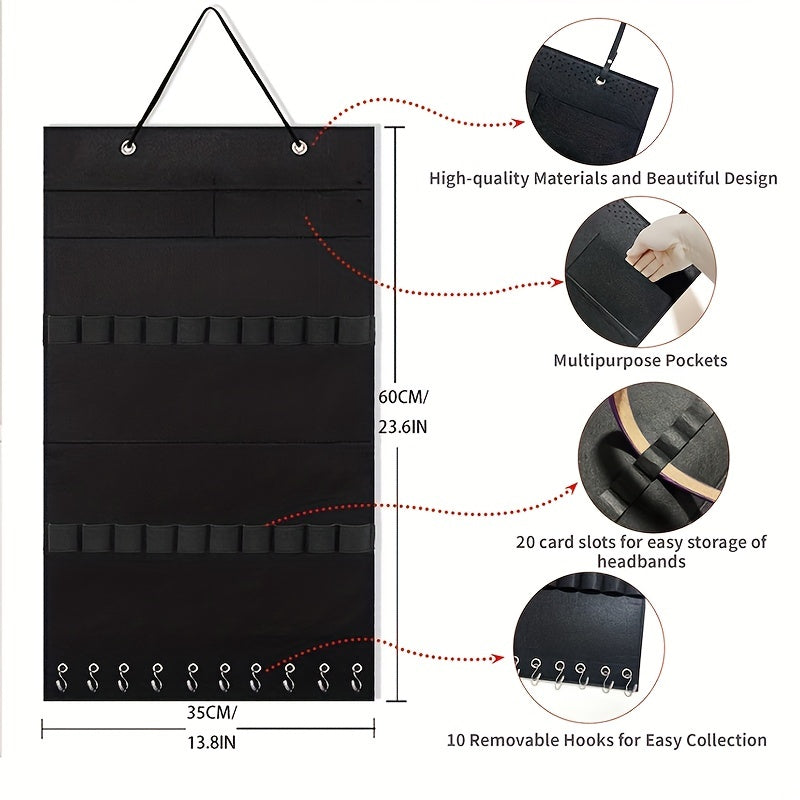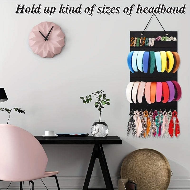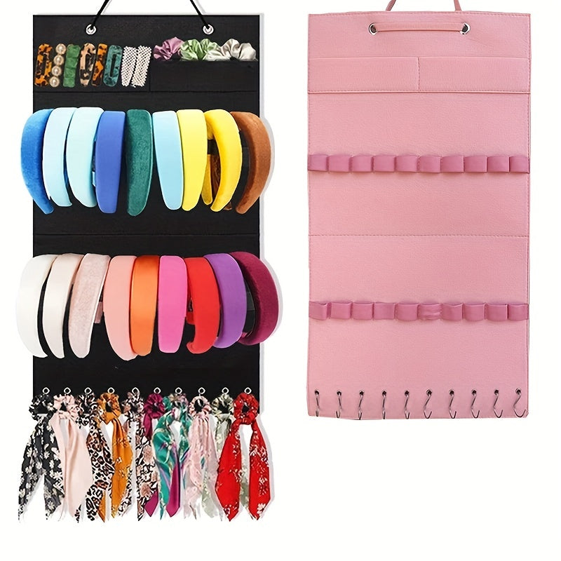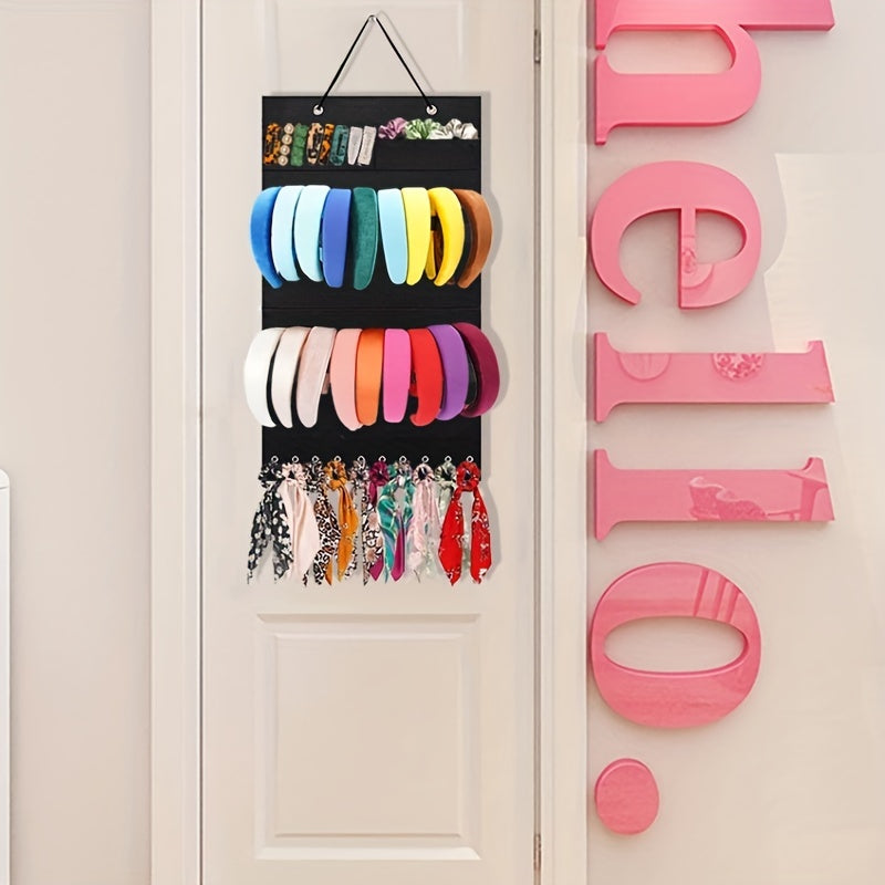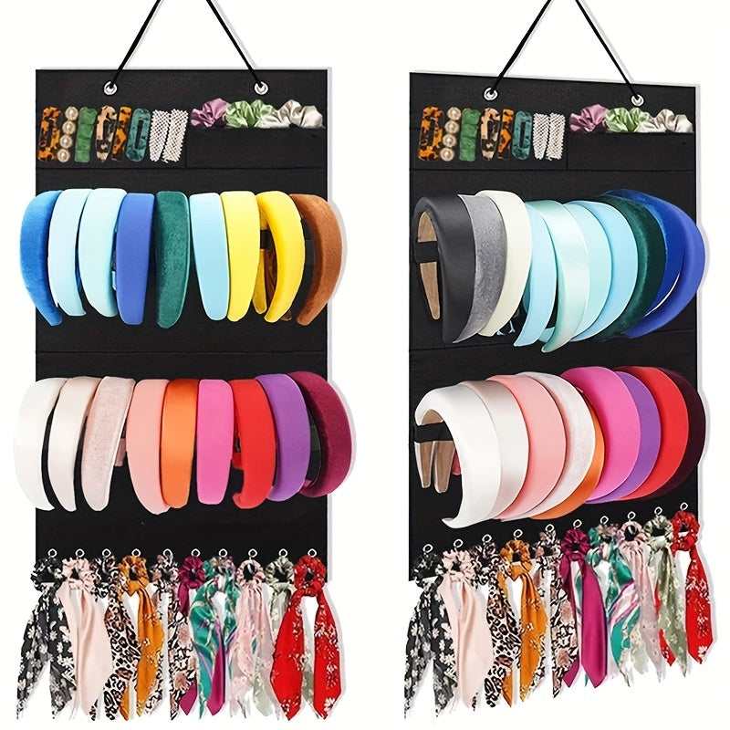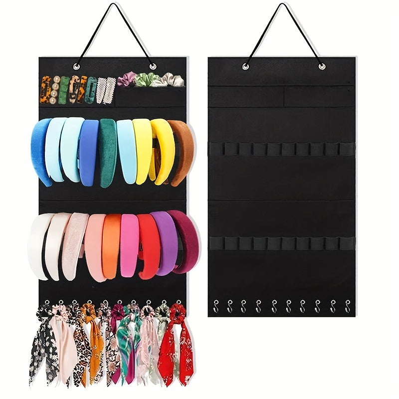Настенный органайзер для резинок для волос - большой контейнер для хранения резинок и аксессуаров, идеально подходит для комнаты, двери или шкафа (включает 10 зажимов)