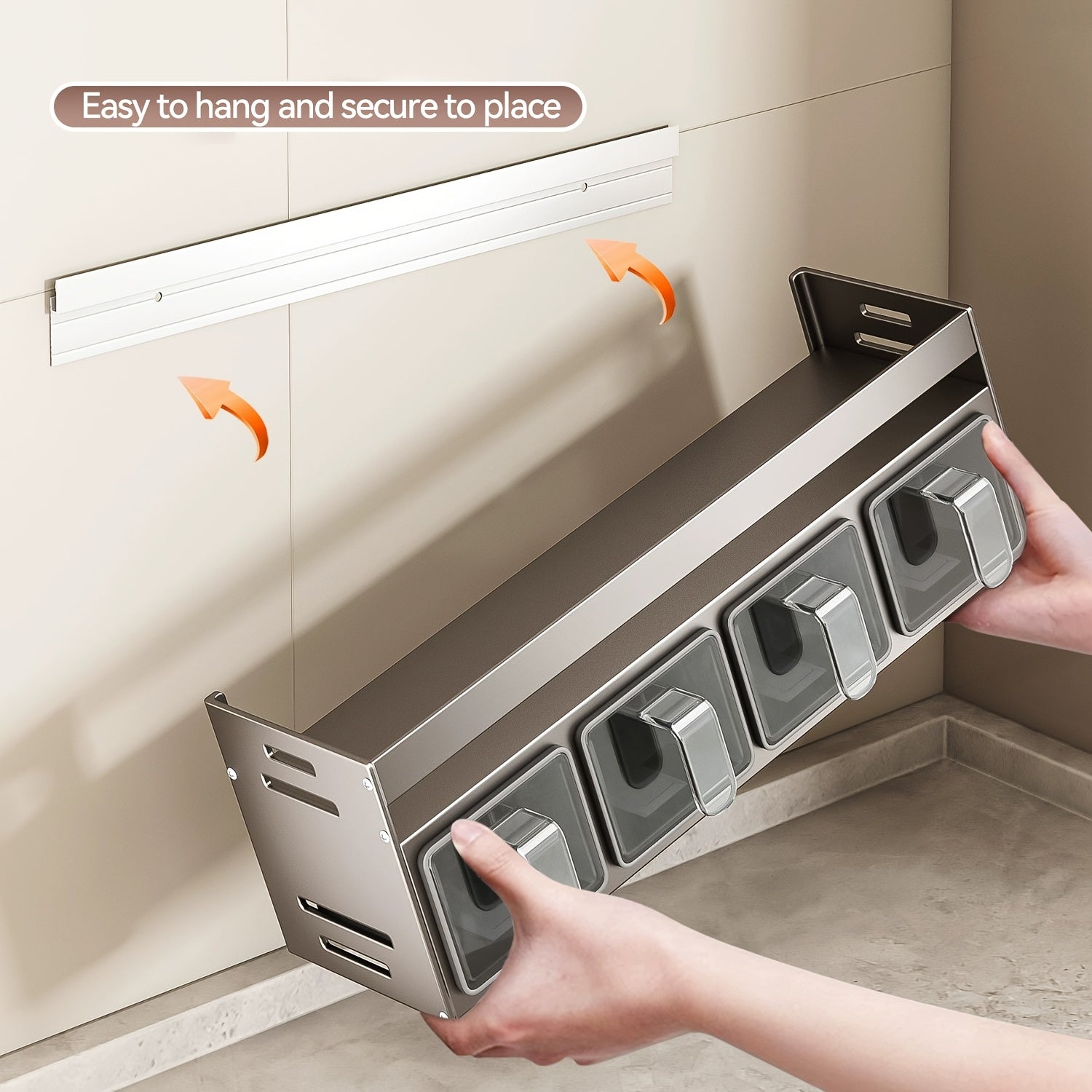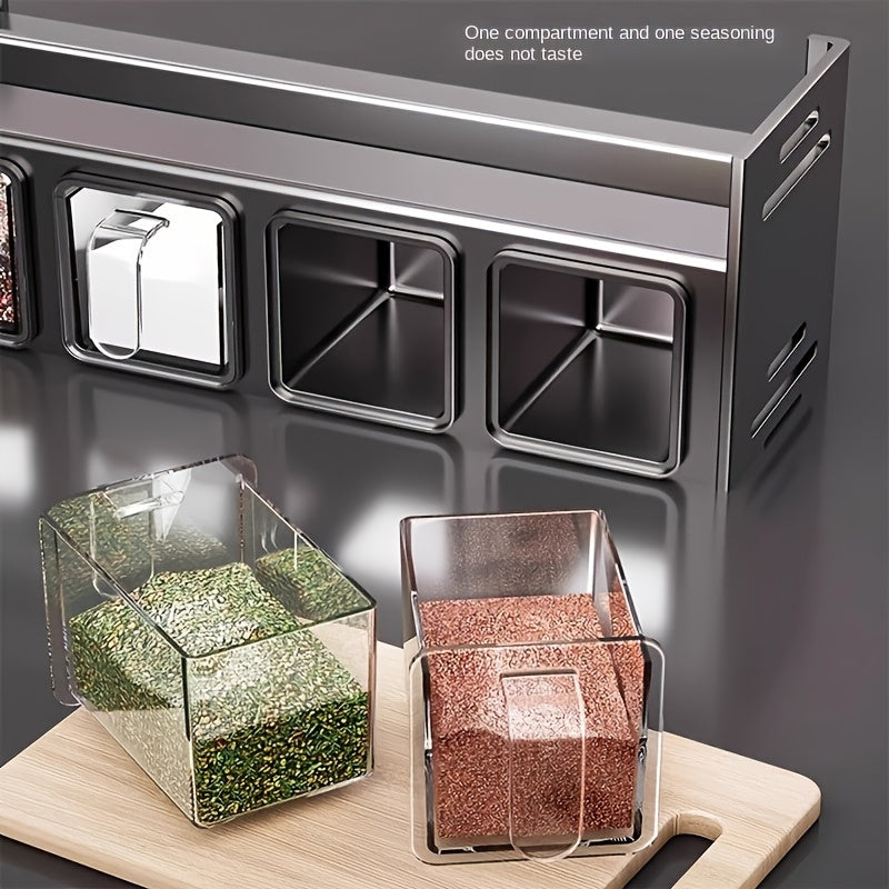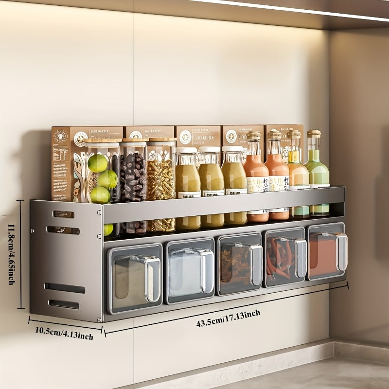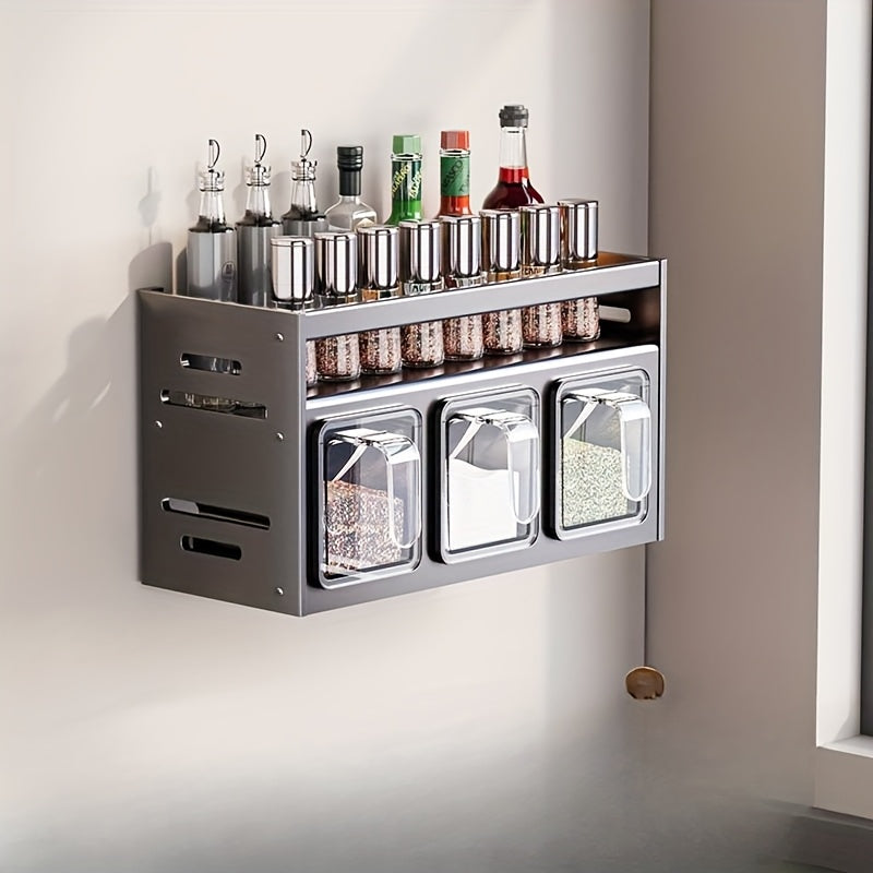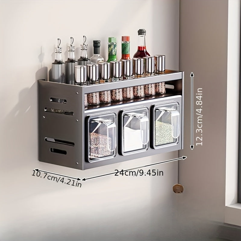 Настенный органайзер для специй с контейнерами и банками для приправ, алюминиевый материал, установка без сверления