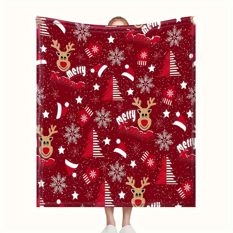 Теплый и уютный рождественский плед с дизайном Санты, елки, оленя и снежинок для дивана и кровати - двусторонний и мягкий материал, машинная стирка для комфорта в любое время года - идеален для рождественского сезона
