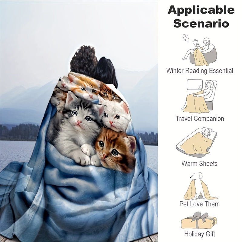Тонкое одеяло "Теплый котенок" - 1 штука, легкий фланелевый плед, идеально подходящий для дивана, кровати, путешествий, кемпинга, гостиной, офиса, дивана, стула и кровати.
