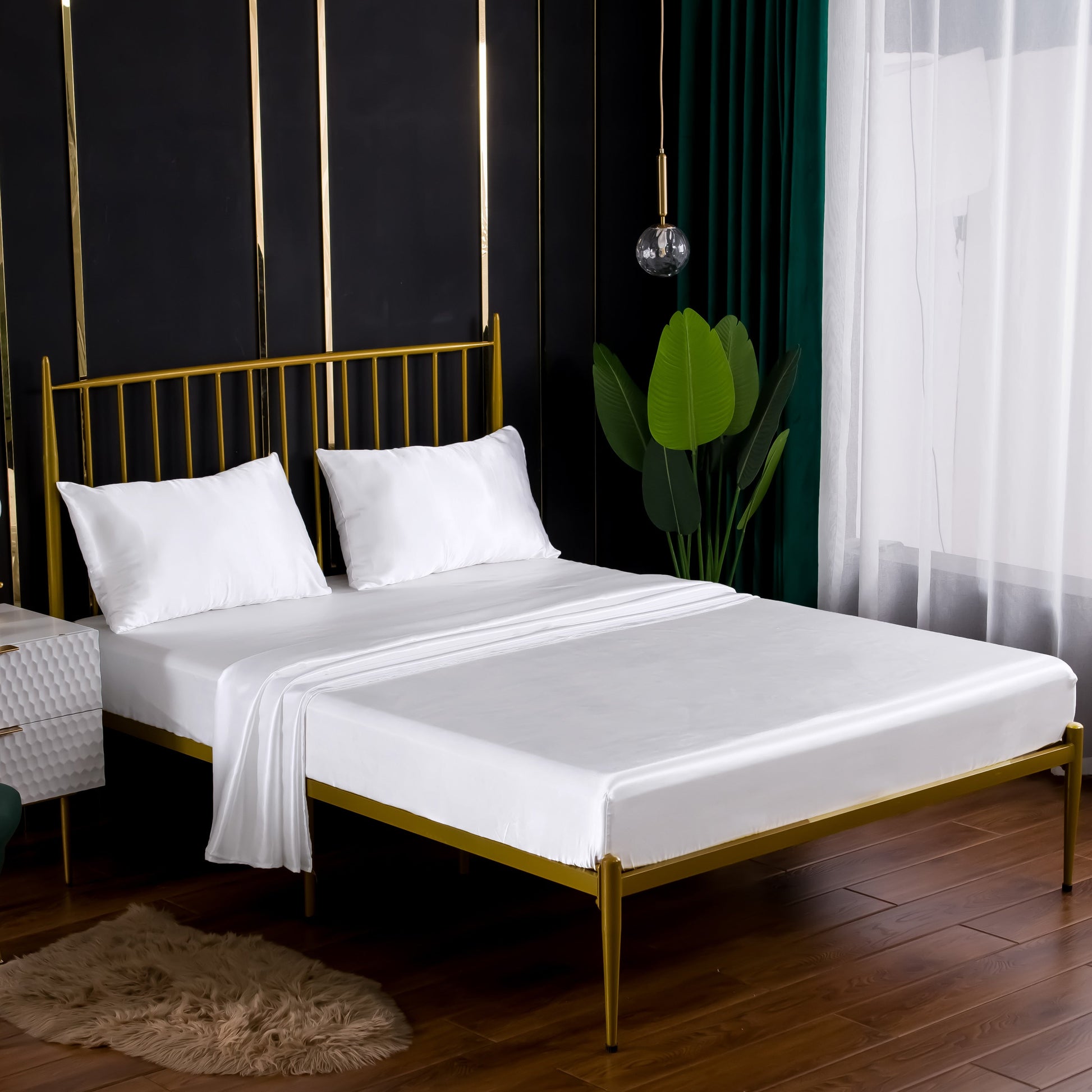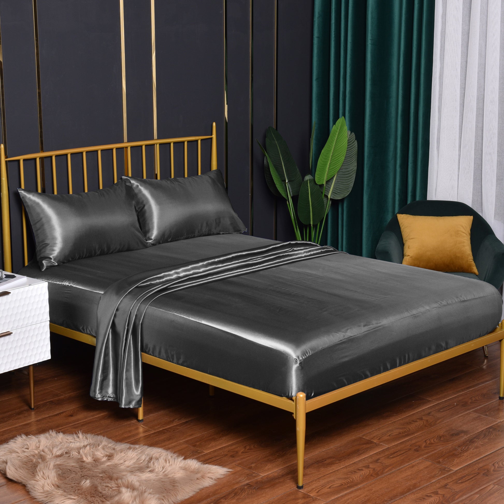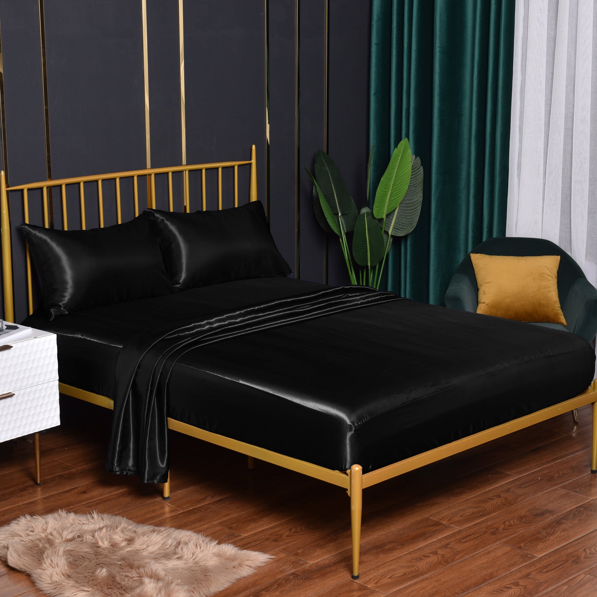 Комплект простыней из стирки шелкового сатина доступен в 3 или 4 предметах. Идеально подходит для спальни, гостевой комнаты или отеля. В комплект входит 1 плоская простыня, 1 простыня на резинке и 1 или 2 наволочки. Ядро не включено.
