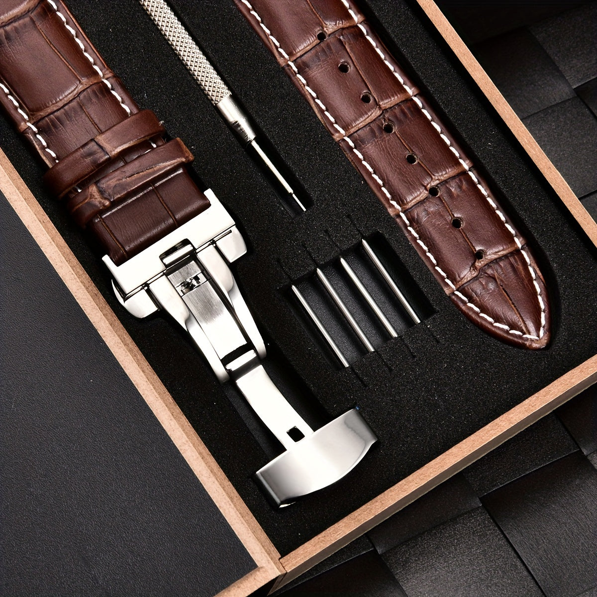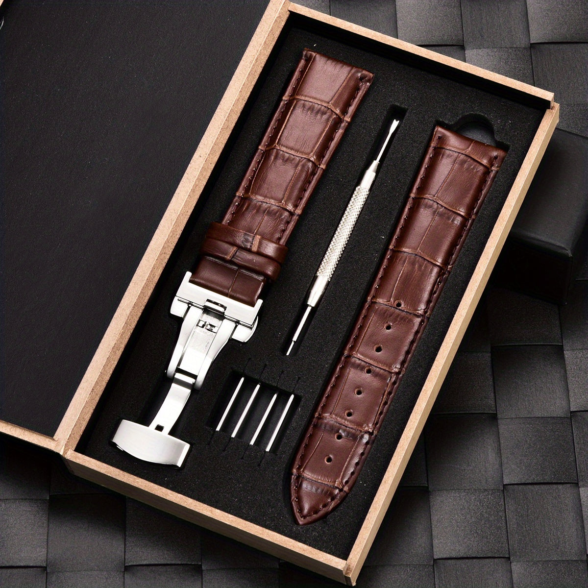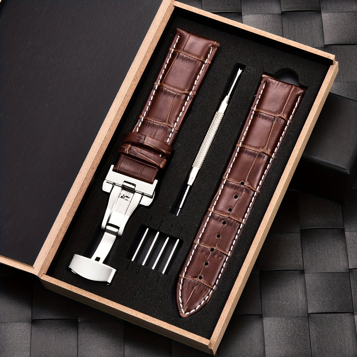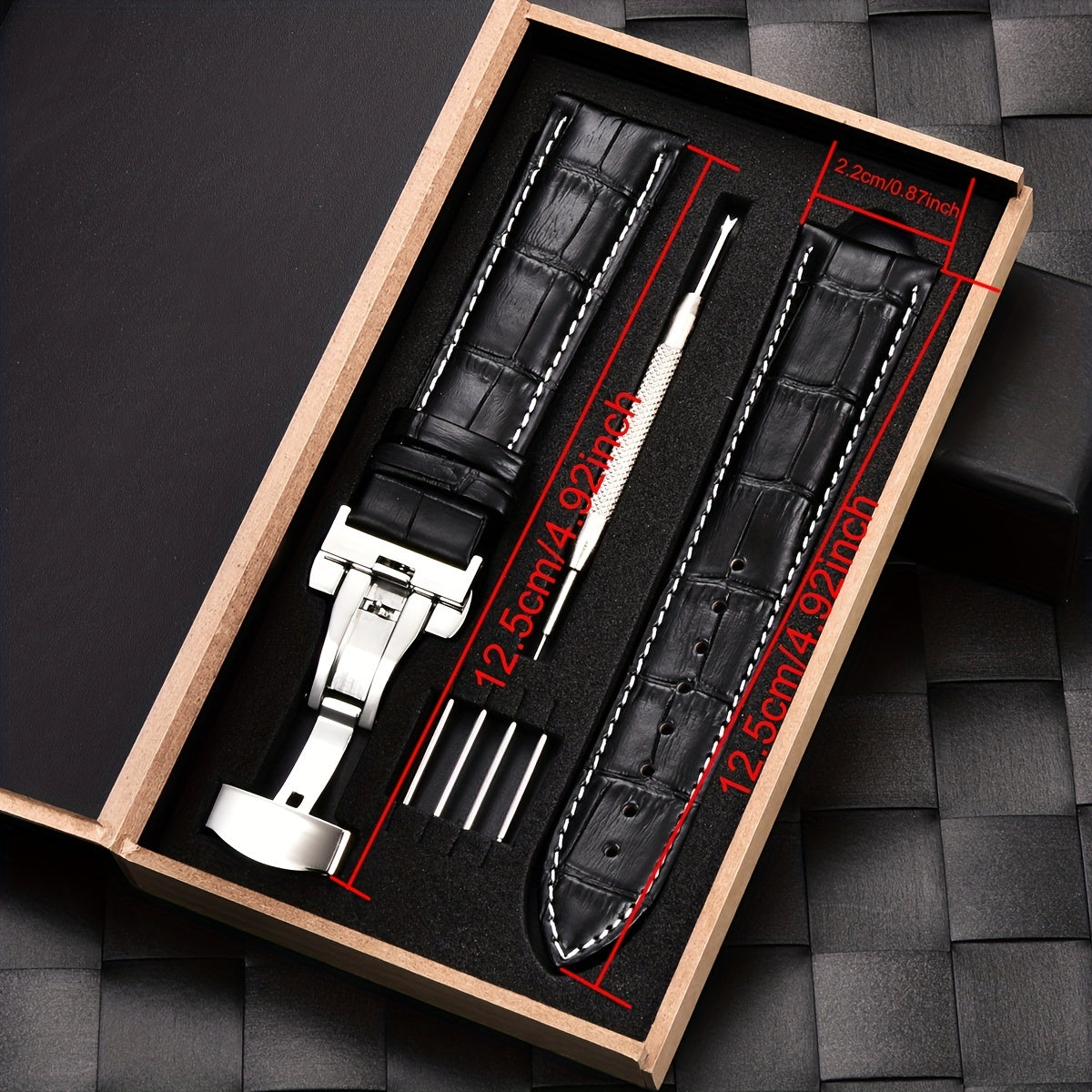 Ремешок для часов из PU-кожи с застежкой-бабочкой из нержавеющей стали, доступен в размерах 18 мм, 20 мм, 22 мм и 24 мм, поставляется в коробке.