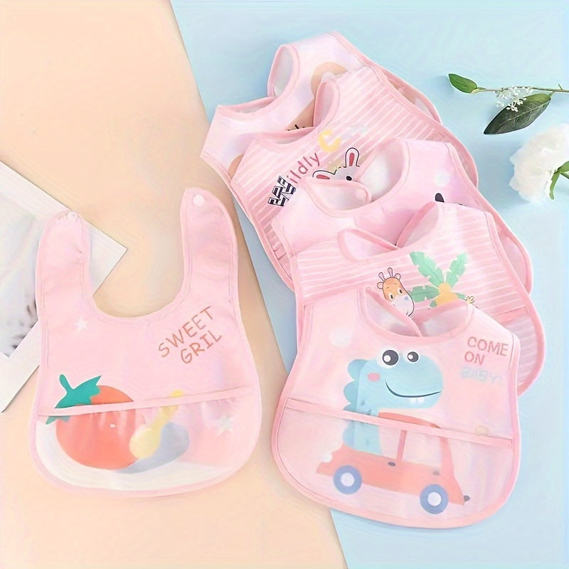 Водонепроницаемые детские слюнявчики в упаковке по 6 штук с разнообразными мультяшными дизайнами, с застежкой на кнопке, из мягкой полиэстеровой трикотажной ткани и U-образной формы для младенцев и малышей.