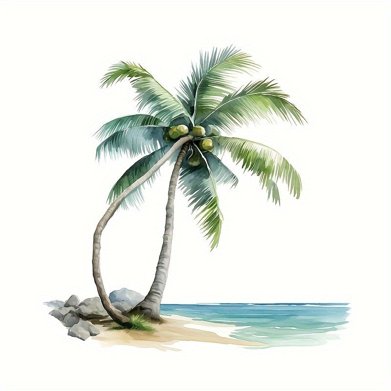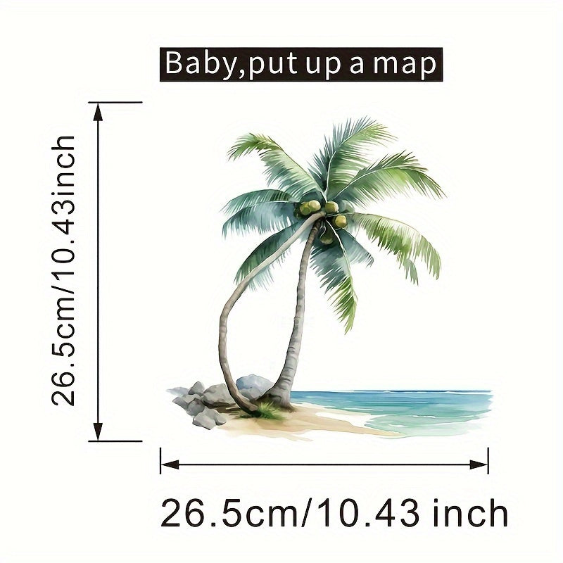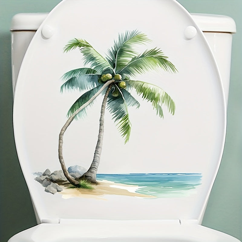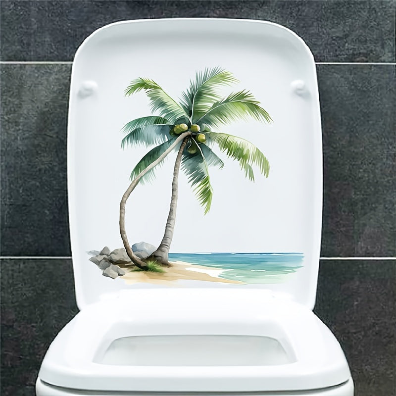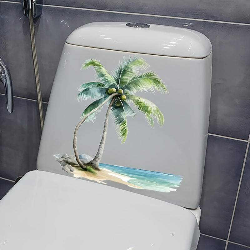 Водонепроницаемая наклейка для ванной с дизайном кокосовой пальмы на фоне океана, самоклеящаяся с матовой отделкой для домашнего декора.