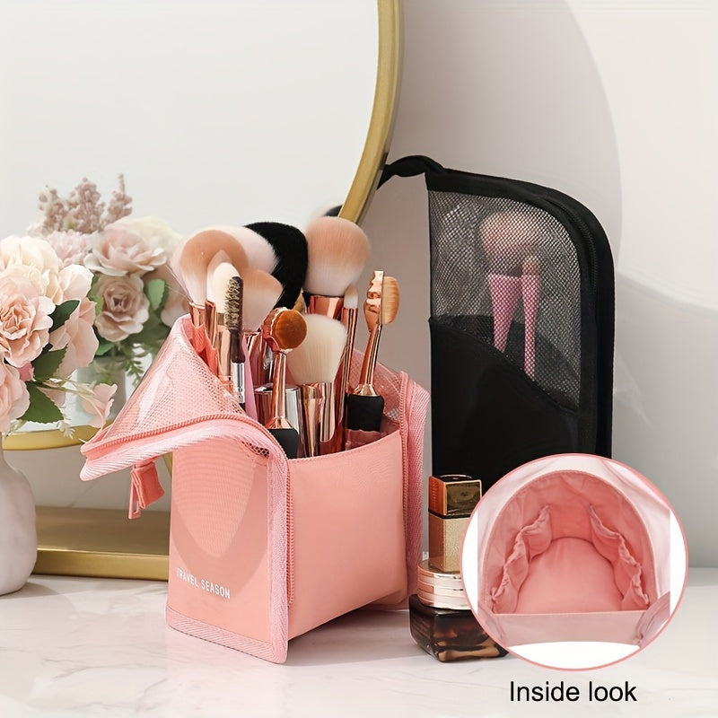Водонепроницаемая сумка для стирки с удобным для путешествий хранением кистей для макияжа, компартментализированным хранением косметики и прозрачным дизайном.