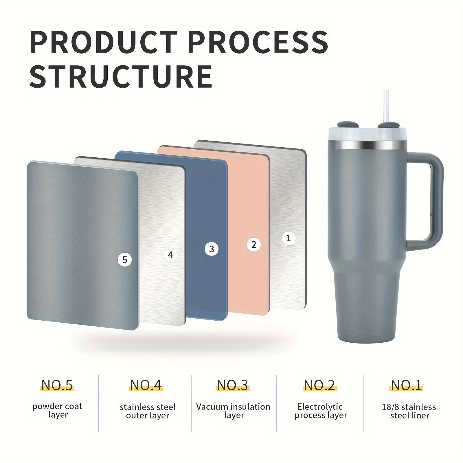 Тумблер Watersy 40 унций с ручкой и крышкой для соломинки, двойные стенки из нержавеющей стали, вакуумная изоляция для горячих и холодных напитков, защищен от проливания и легко чистится.