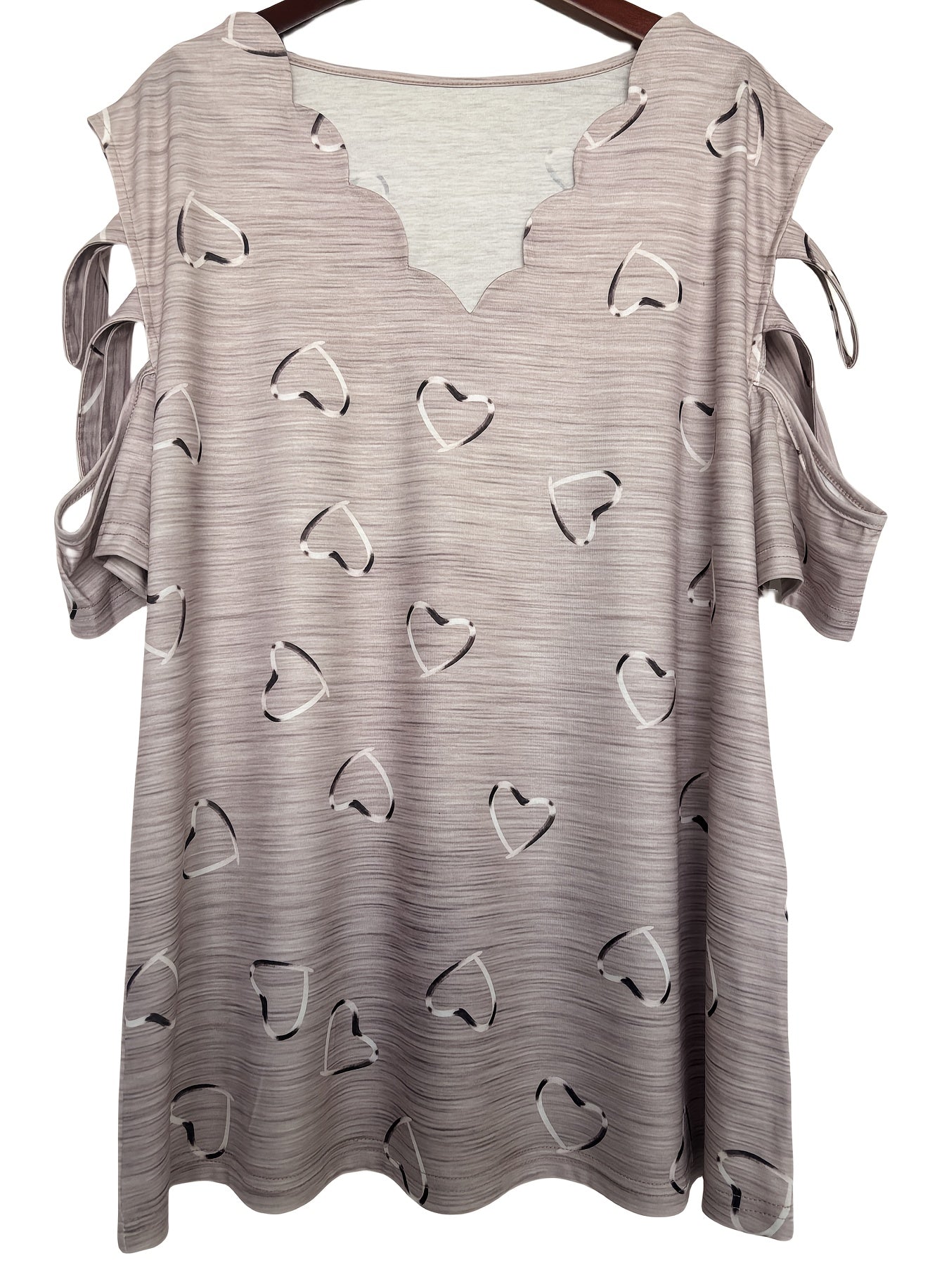 Волнистая футболка с V-образным вырезом, открытыми плечами и короткими рукавами