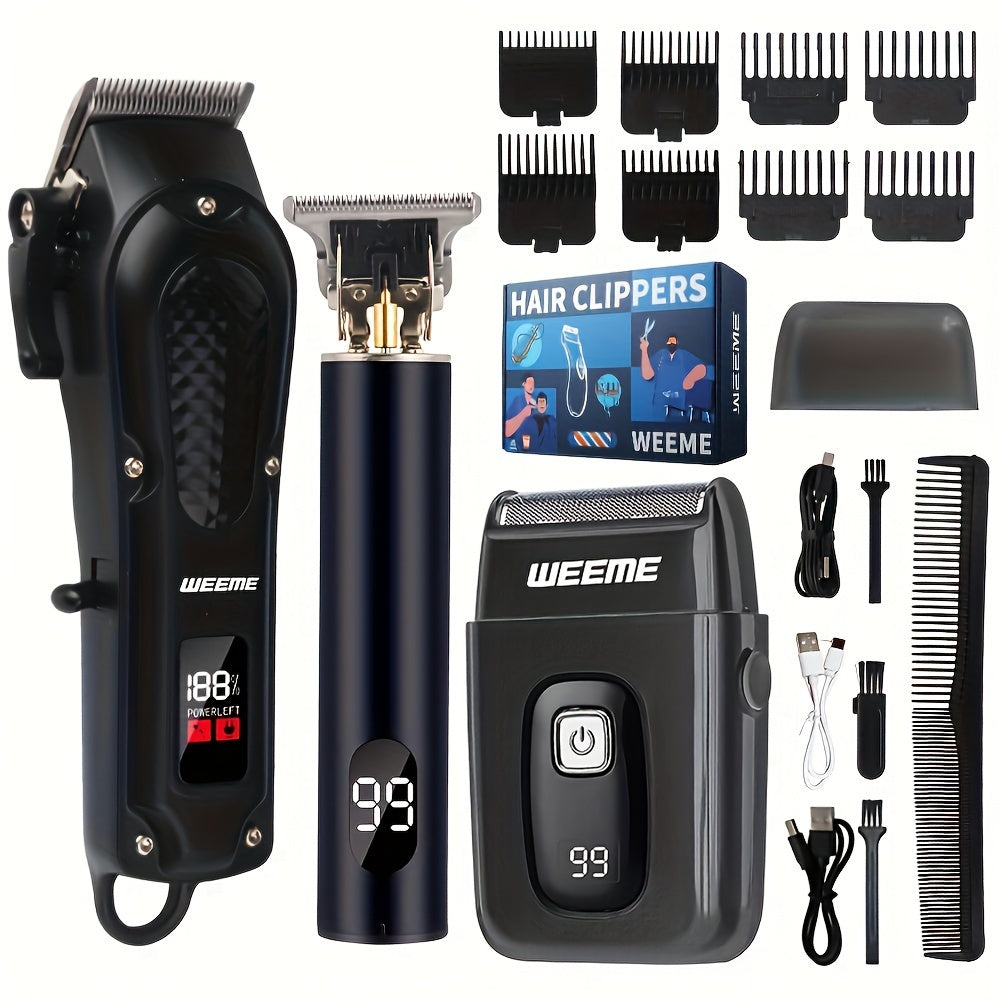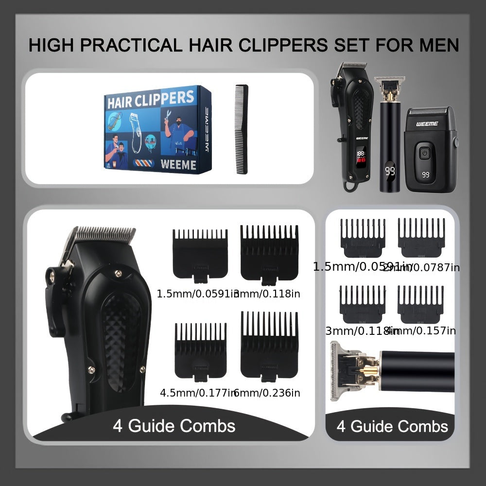 Классический черный трехкомпонентный набор: электробритва, триммер, бритва, USB-зарядка для мужчин