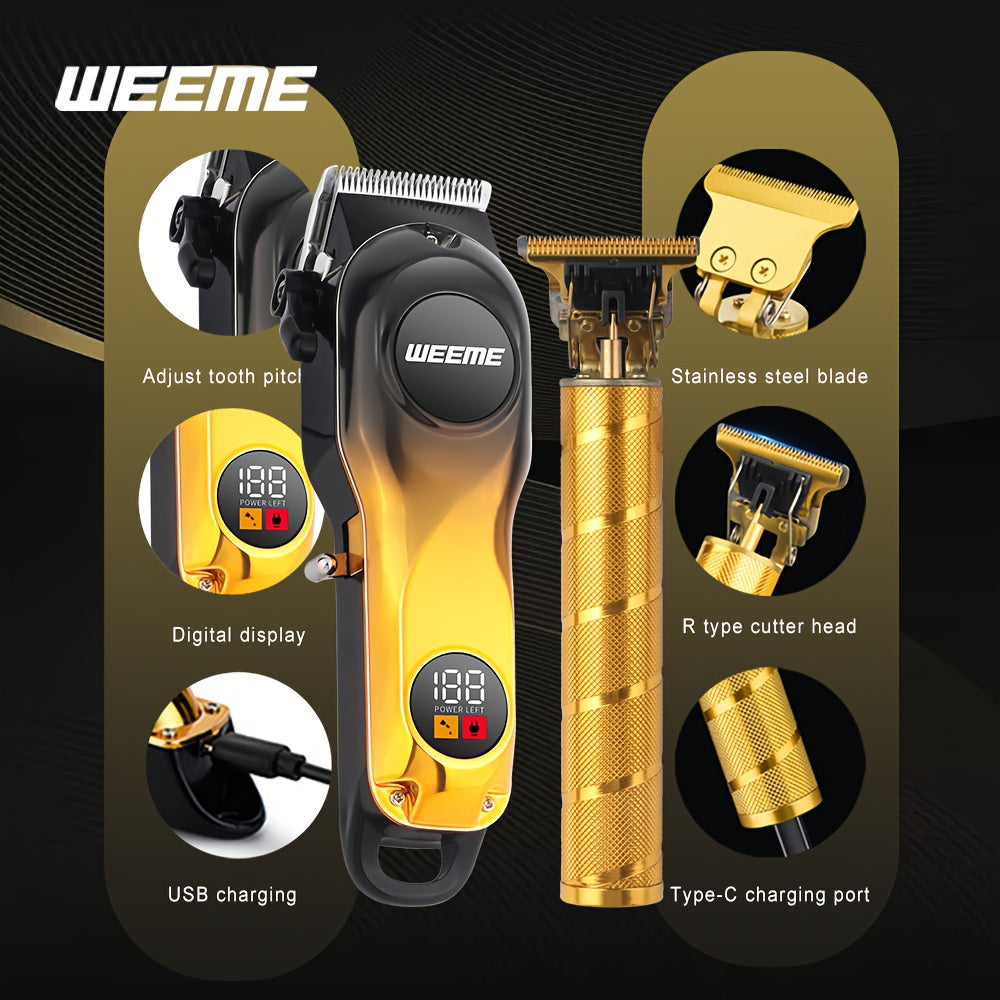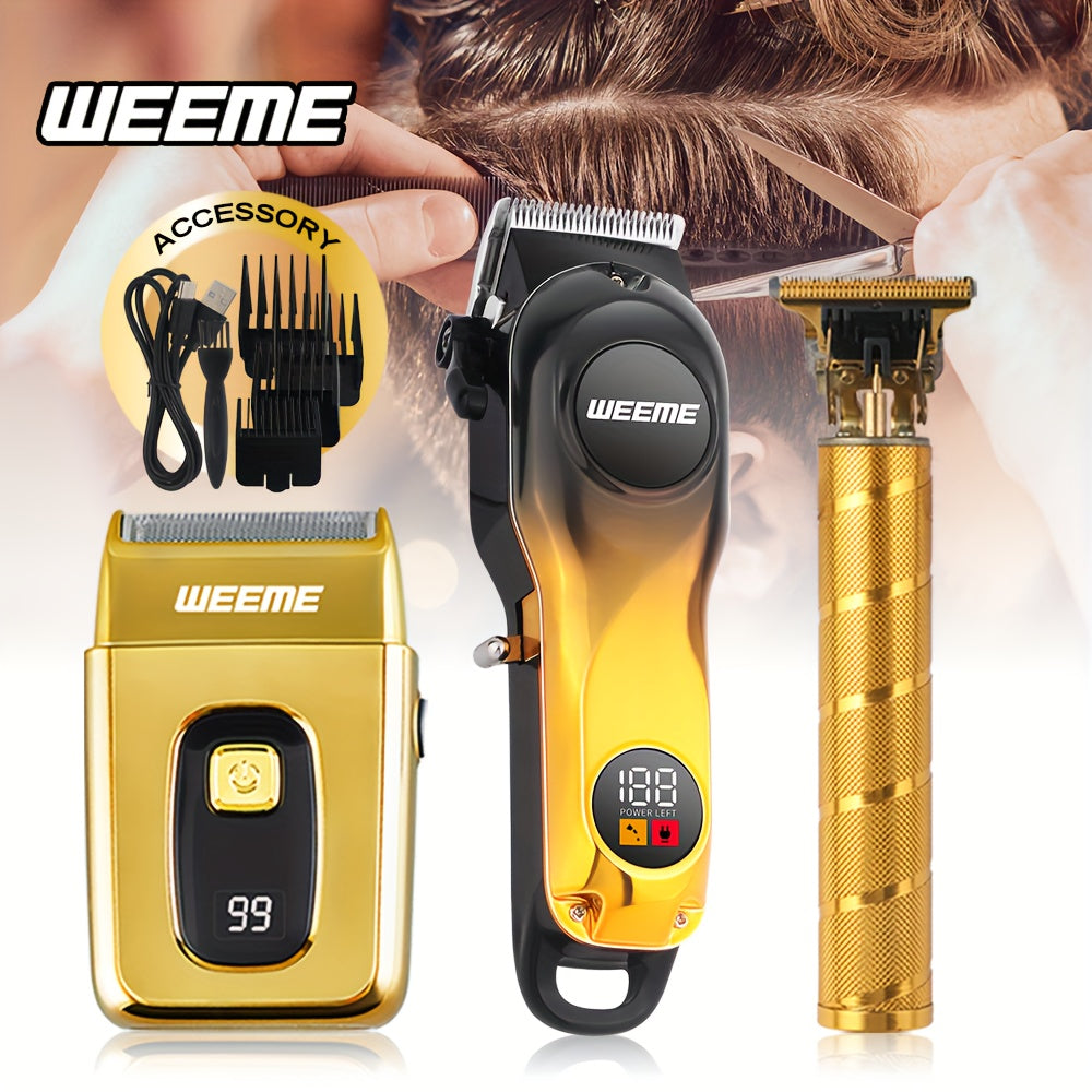 Мужской набор для стрижки и бритья, электробритва, роторный триммер, T-образная бритва, триммер, USB-зарядка, ЖК-дисплей, уход за собой