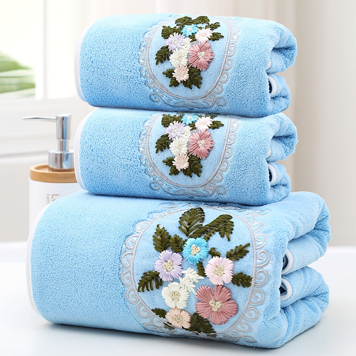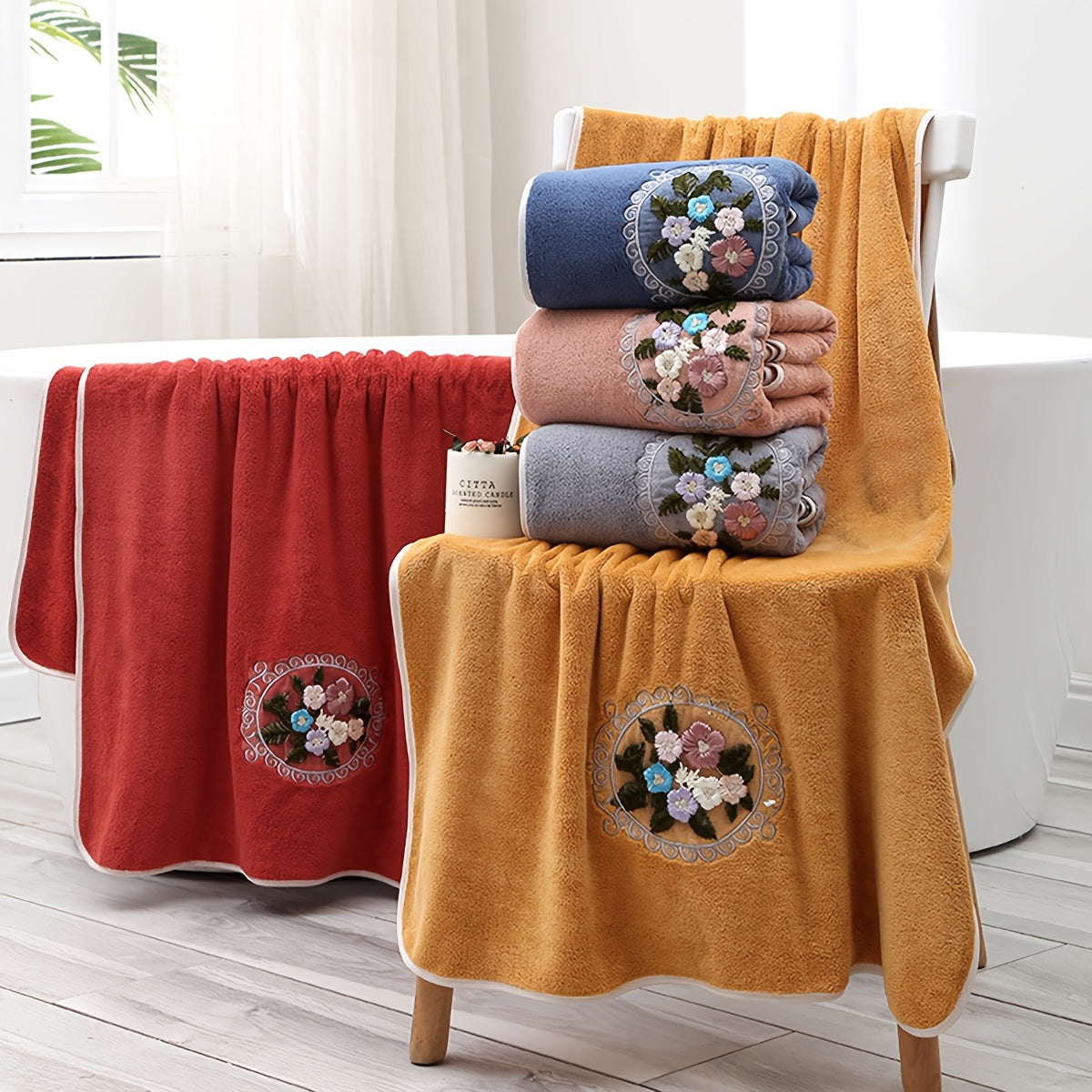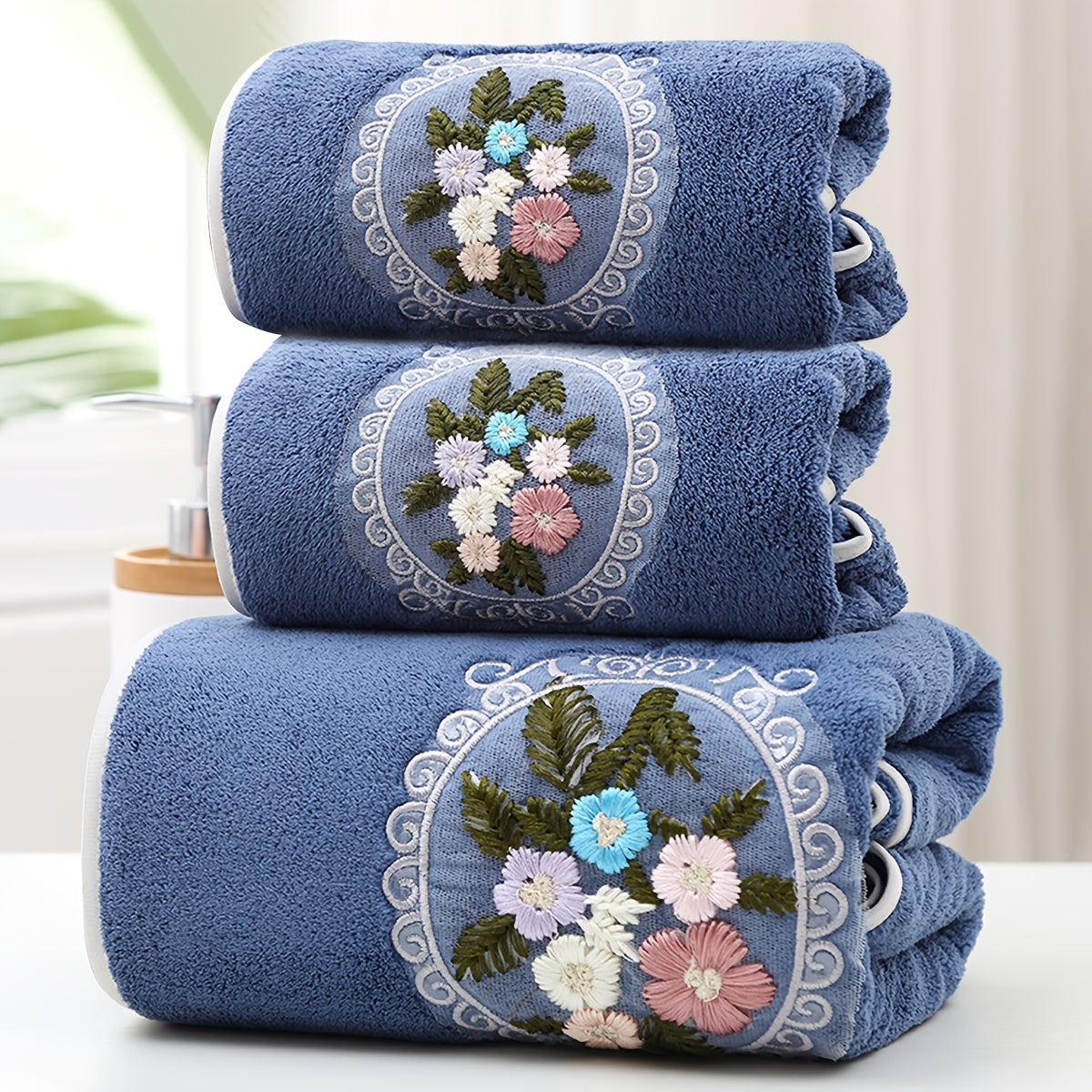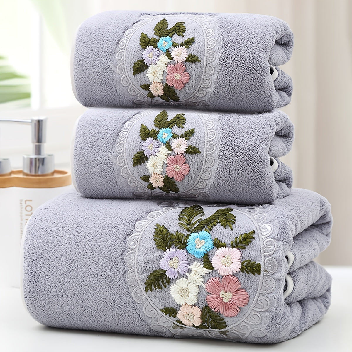 WF марлевая цветочная 2 цента + 1 ванна / набор 3 шт. Королевский бархат вышитые полотенца (2 35*75 см, 1 70*140 см) мягкие, впитывающие, быстро сохнущие предметы для ванной для детей и взрослых, дружелюбные к коже.