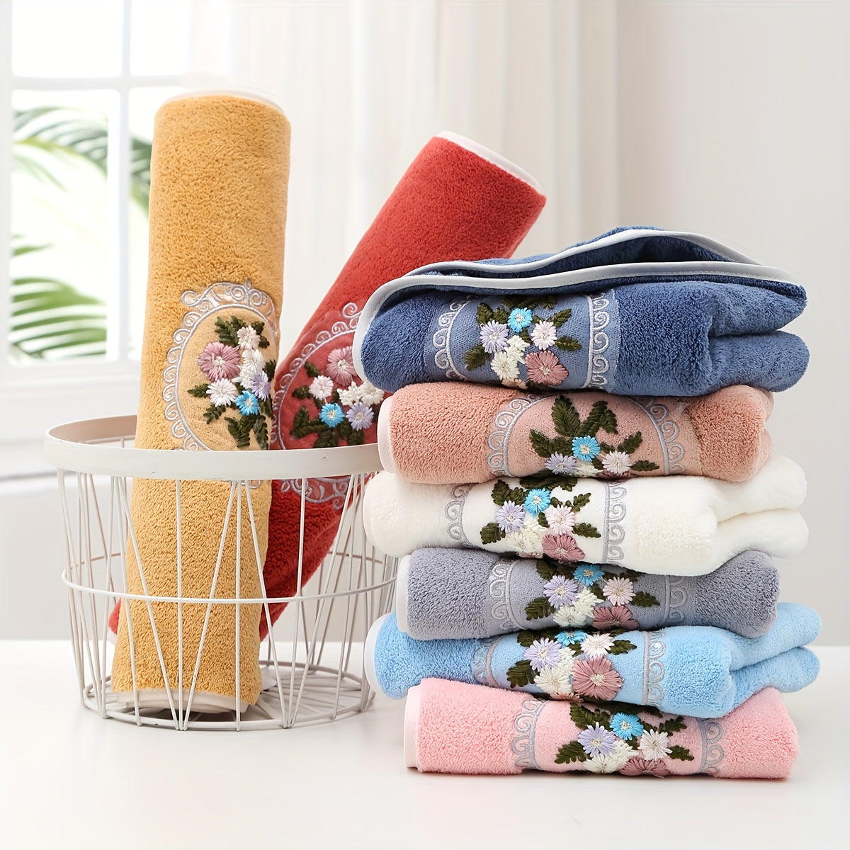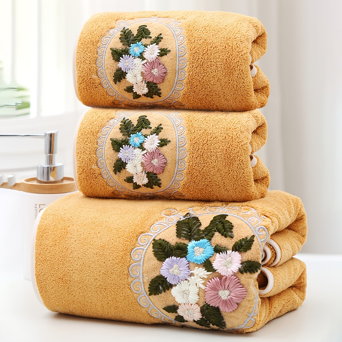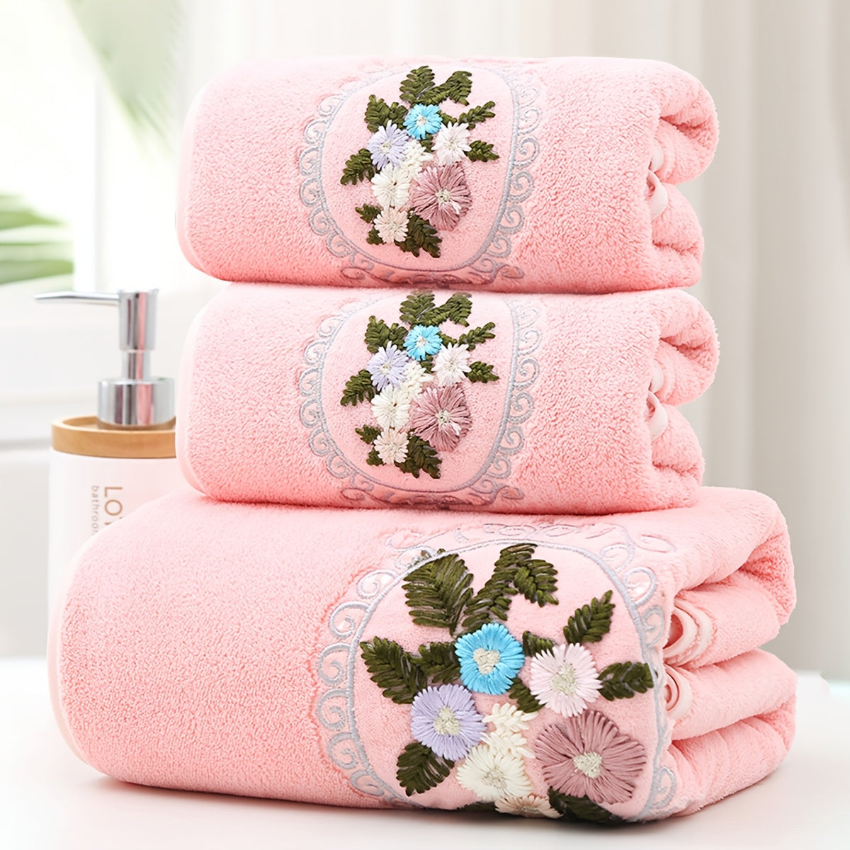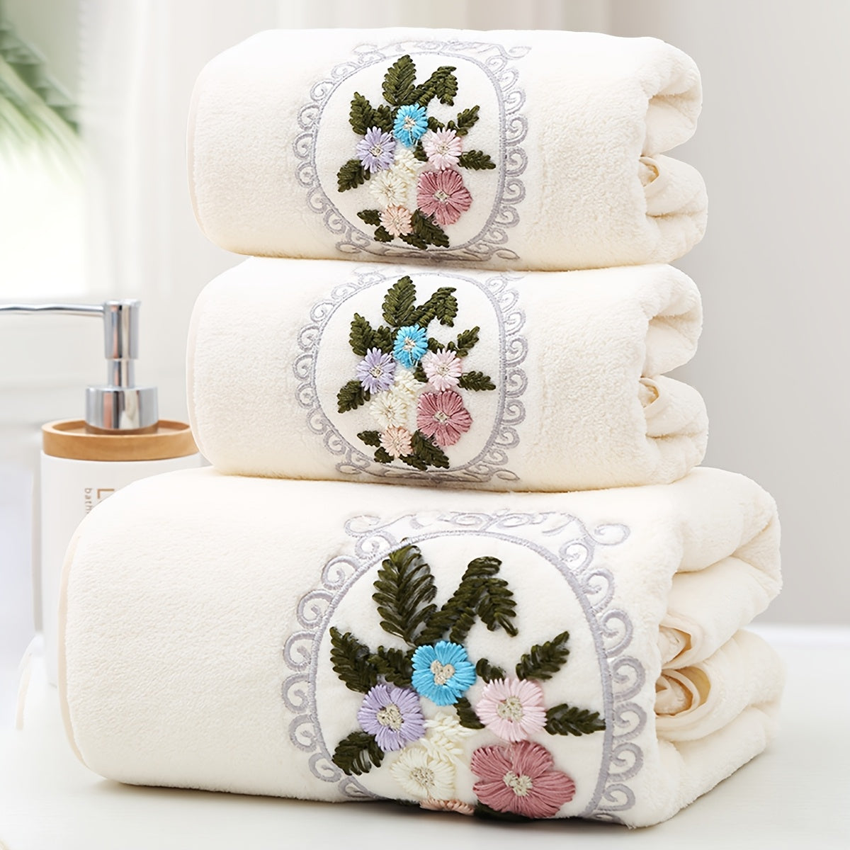 WF марлевая цветочная 2 цента + 1 ванна / набор 3 шт. Королевский бархат вышитые полотенца (2 35*75 см, 1 70*140 см) мягкие, впитывающие, быстро сохнущие предметы для ванной для детей и взрослых, дружелюбные к коже.