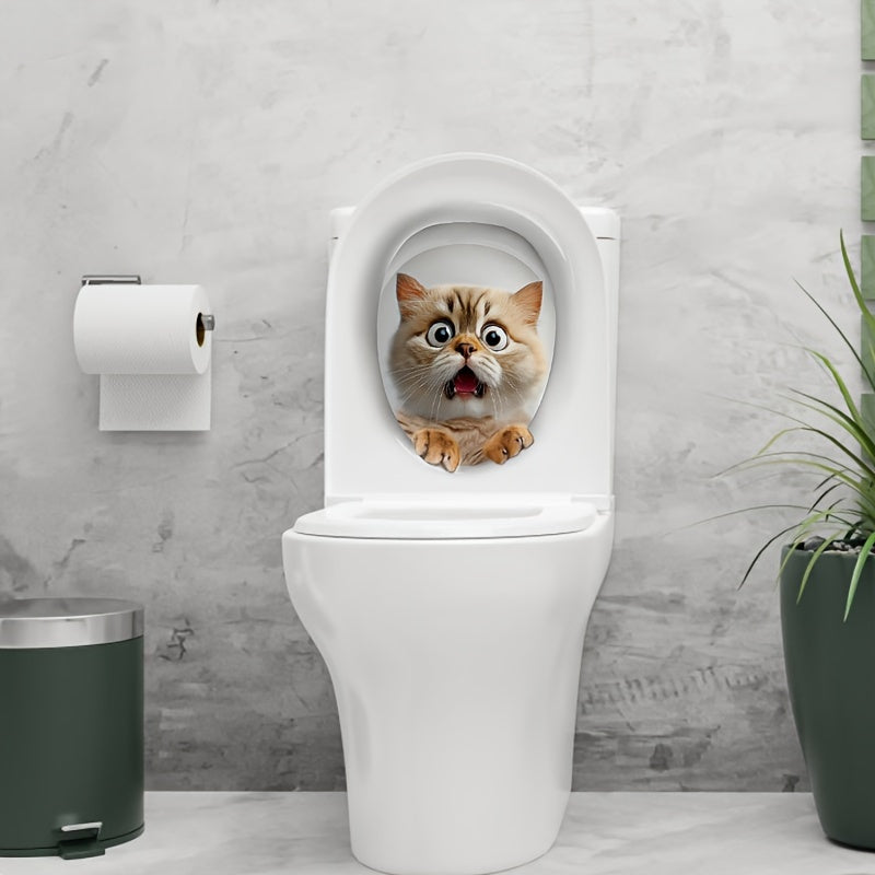 Непредсказуемая наклейка для туалета с заглядывающим котом добавляет юмор и очарование в домашний декор. Легко наносится на керамику, одноразовая с полуматовой отделкой для необычного акцента.