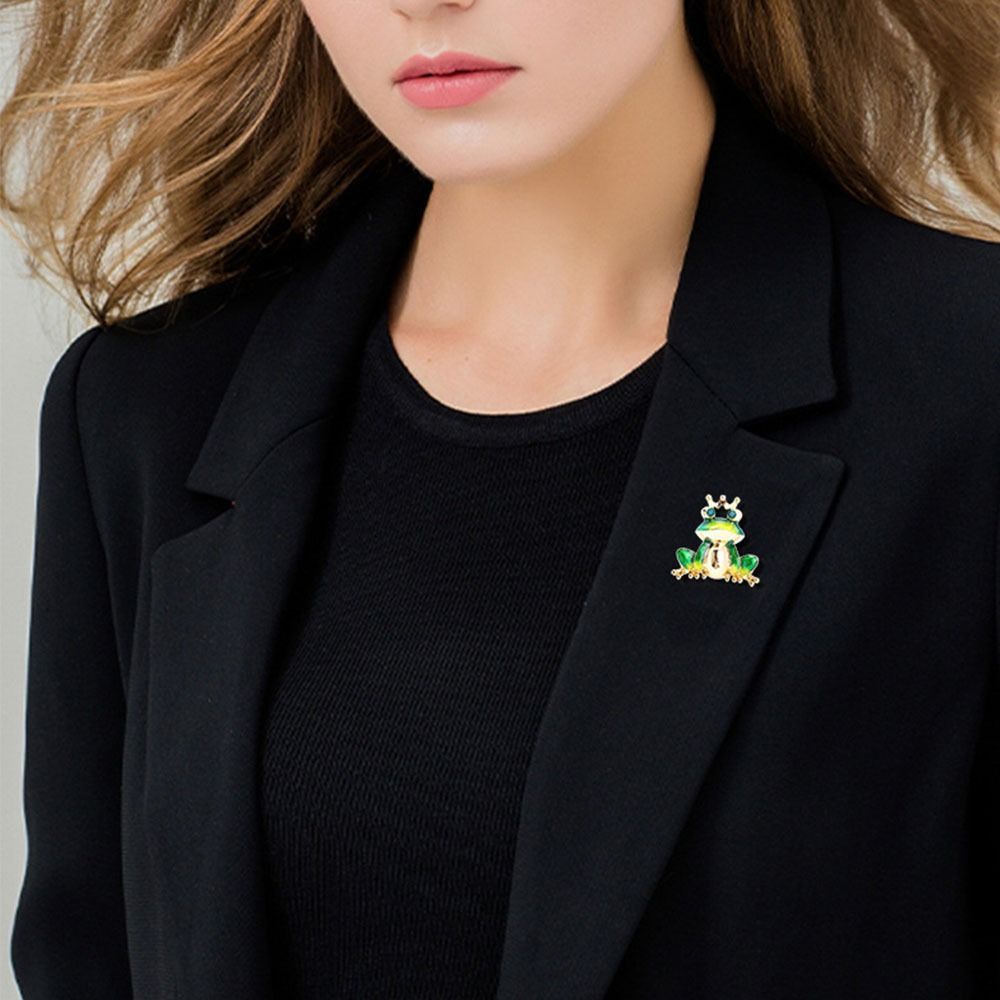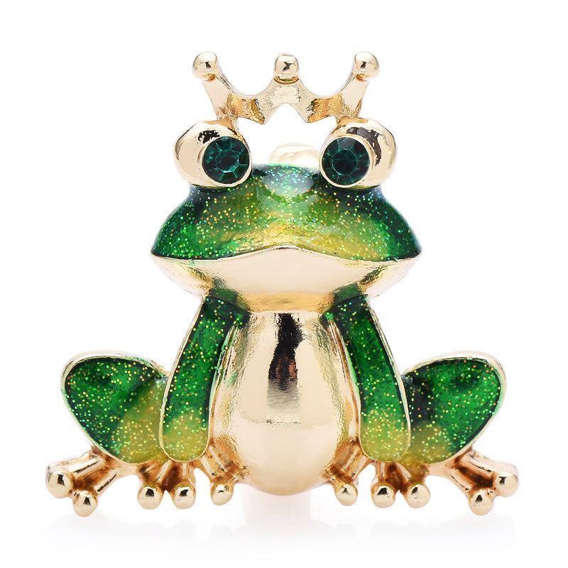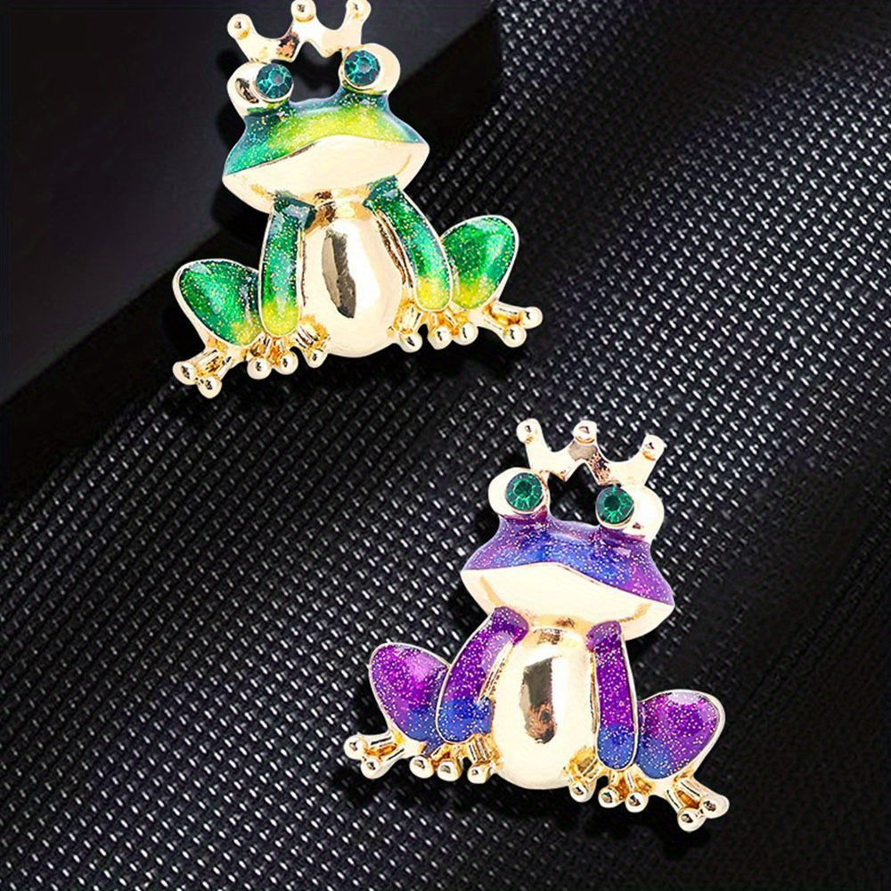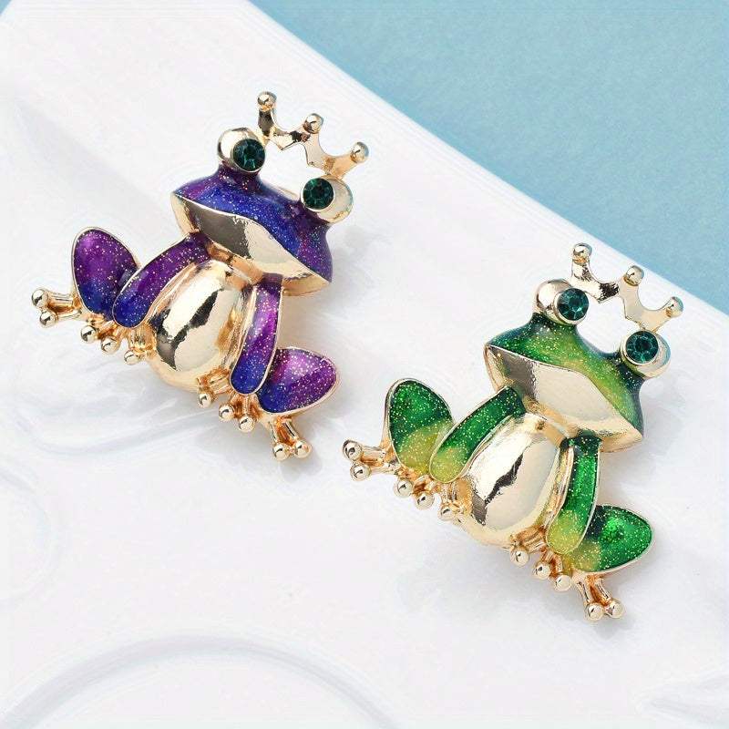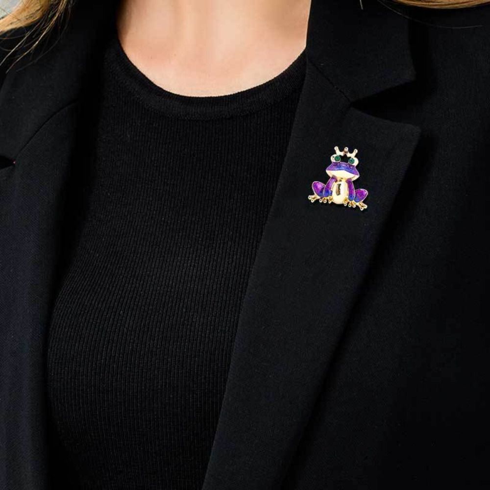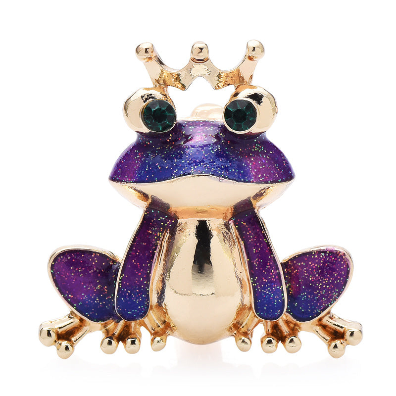 Эмалевый брошка-булавка "Сказочные Крылья" с лягушкой и короной - Идеально для вечеринок и повседневной носки, готовый к подарку милый двухцветный животный лацкан.