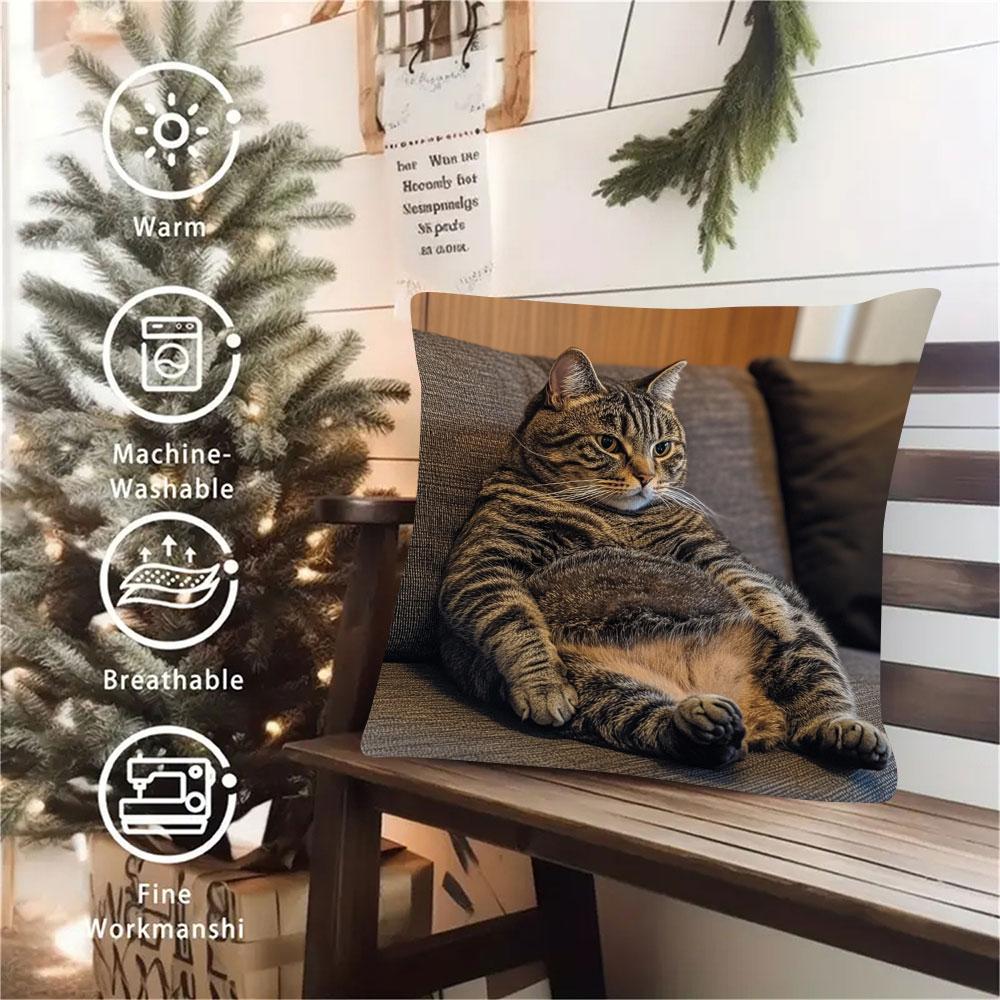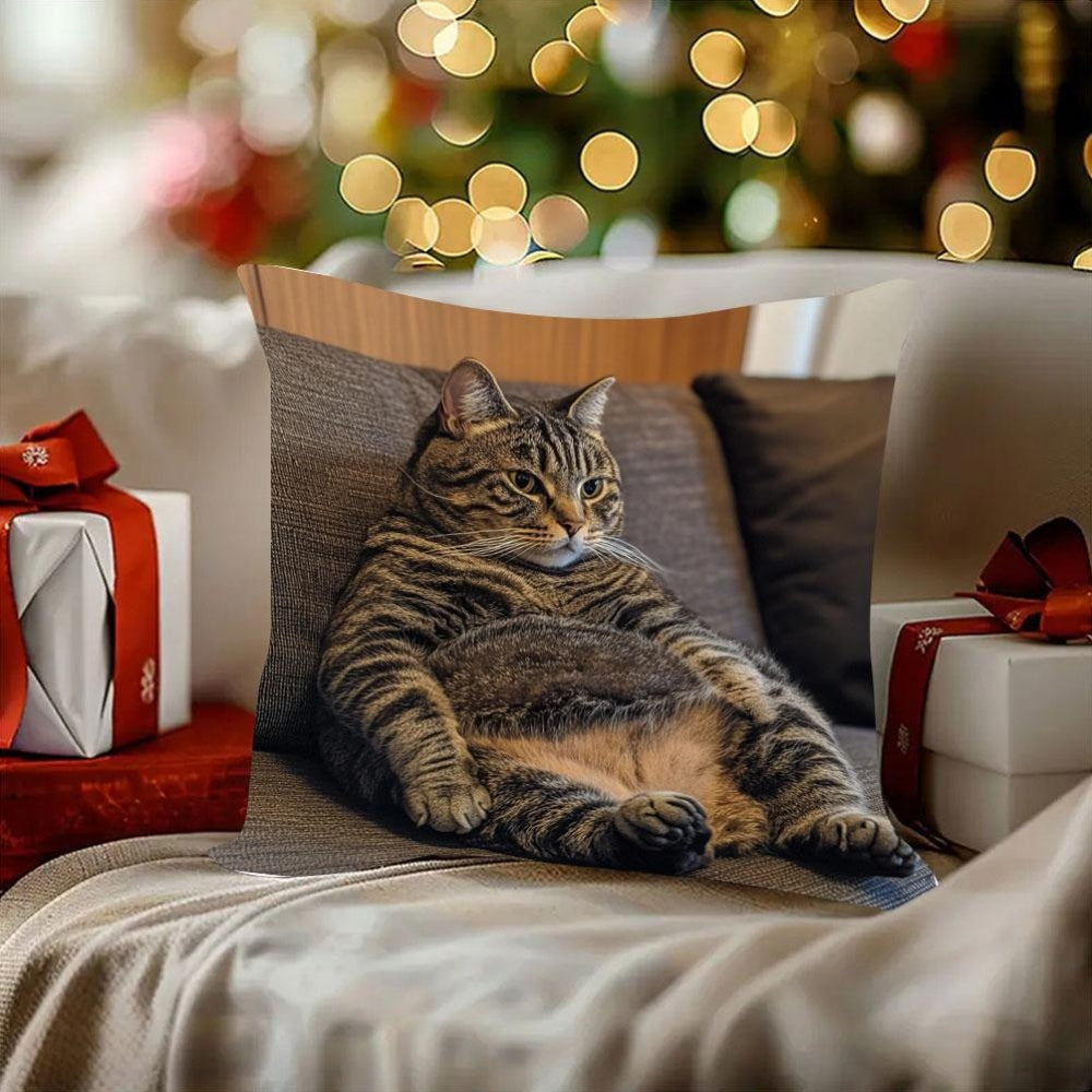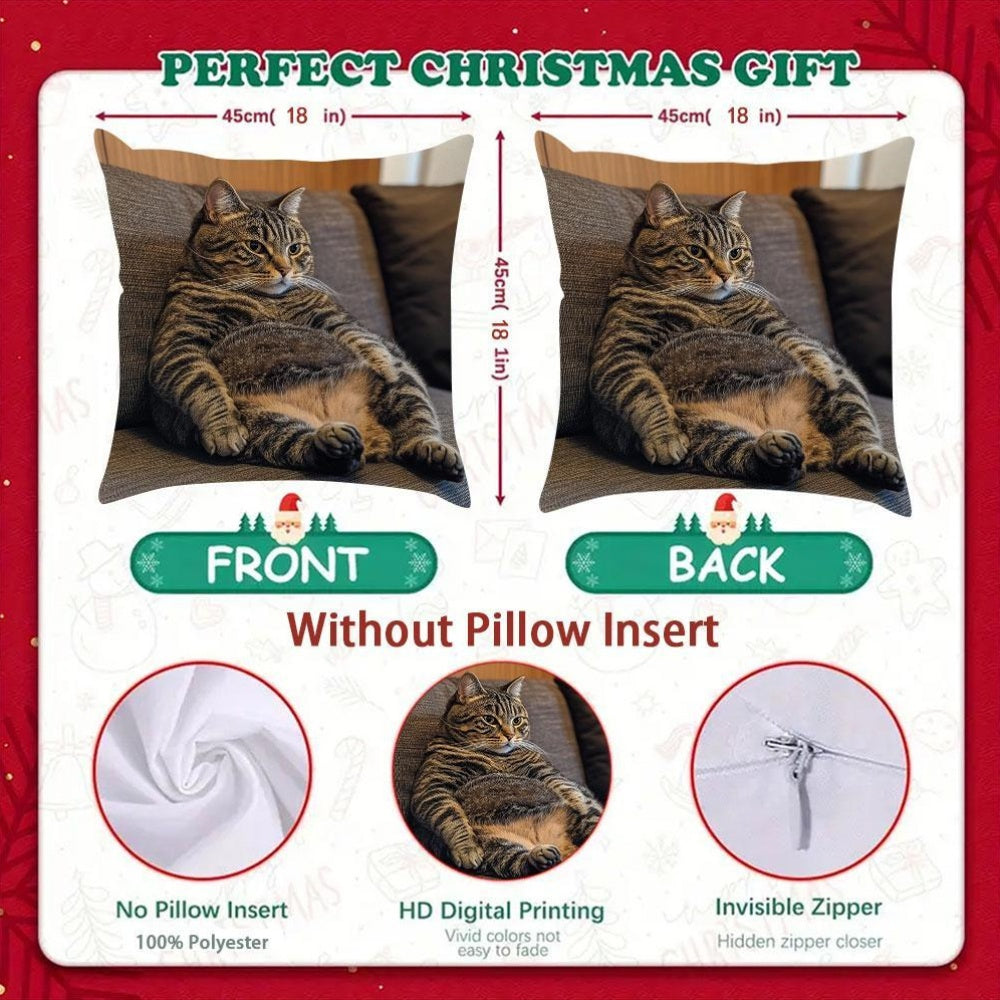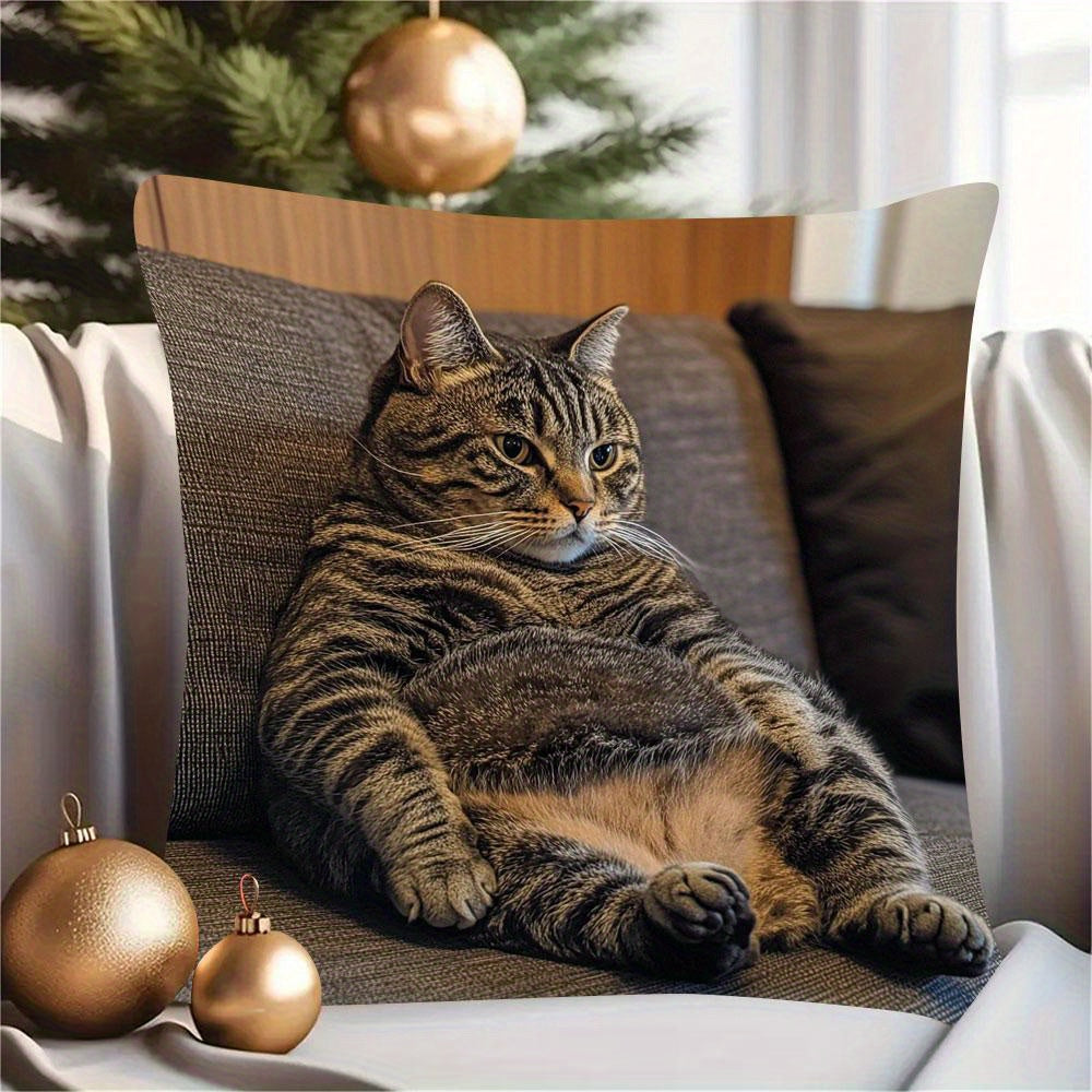 Подушка с изображением "Капризная зимняя толстая кошка" - двусторонний чехол из полиэфирного волокна для рождественского дивана, праздничного домашнего декора. Вставка не включена.