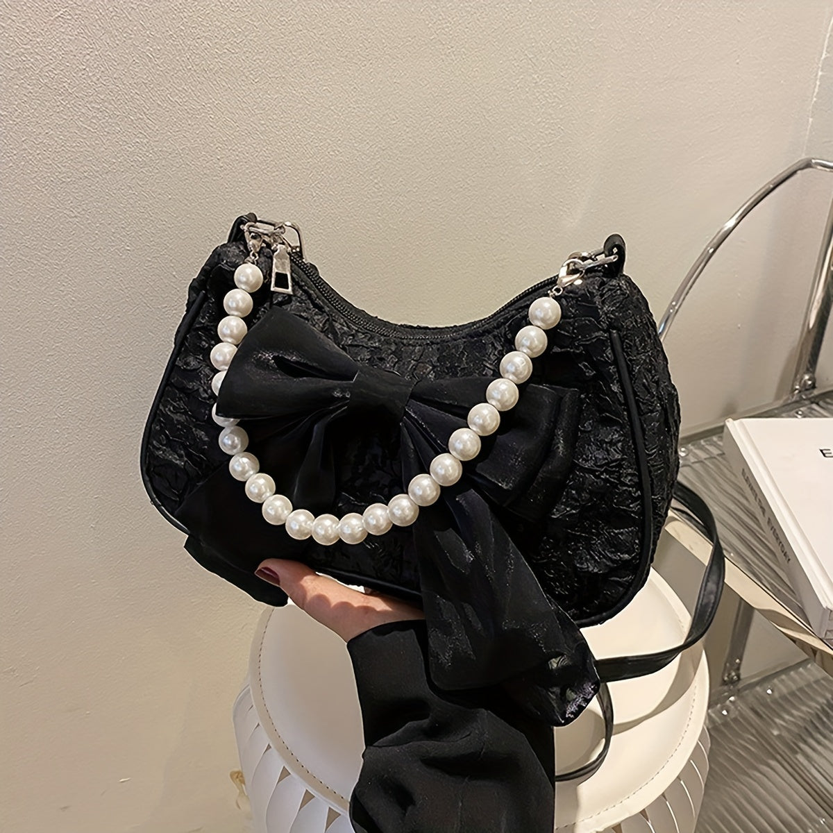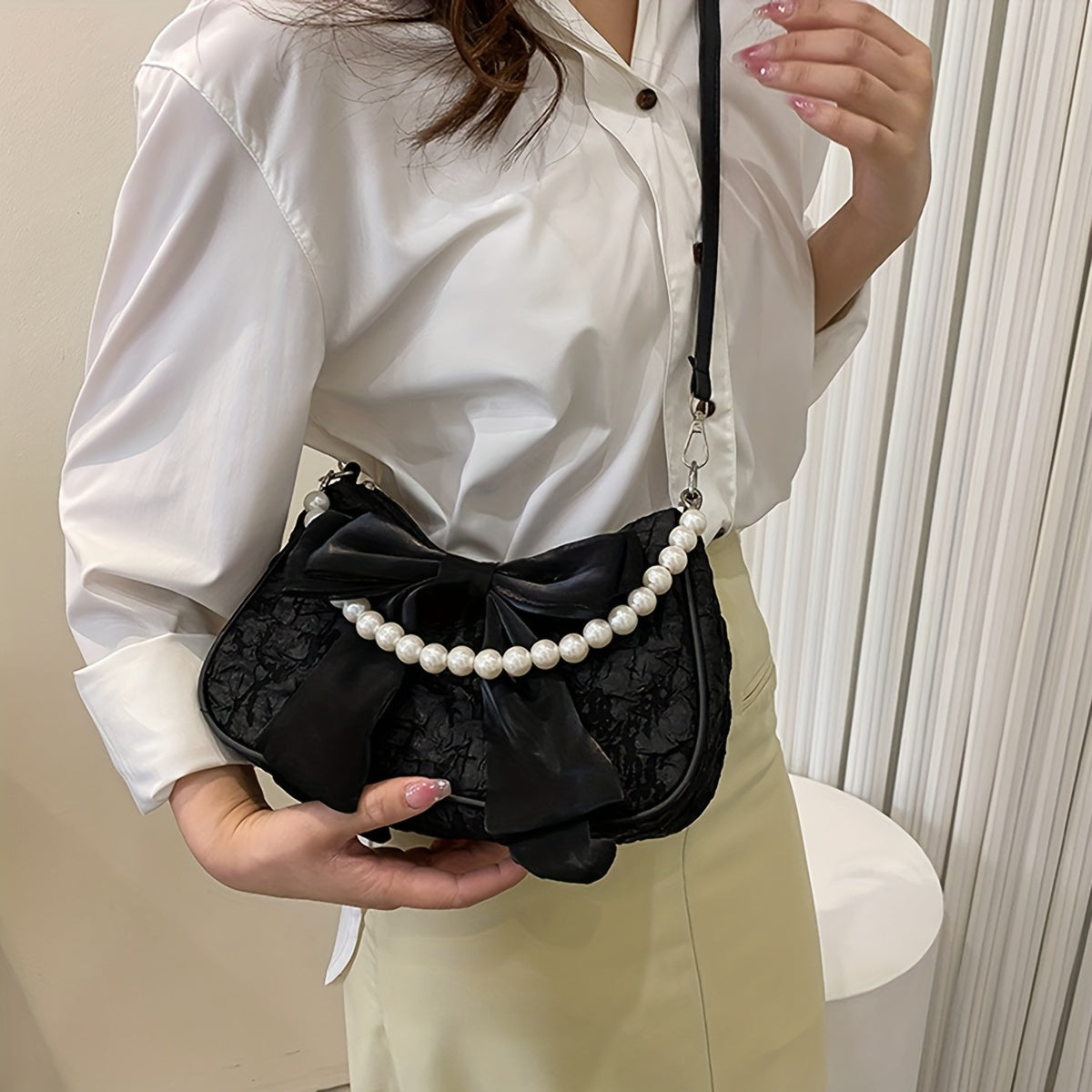 Белая плиссированная ретро-сумка с бантом и перламутровой ручкой, новая модная перламутровая сумка через плечо.