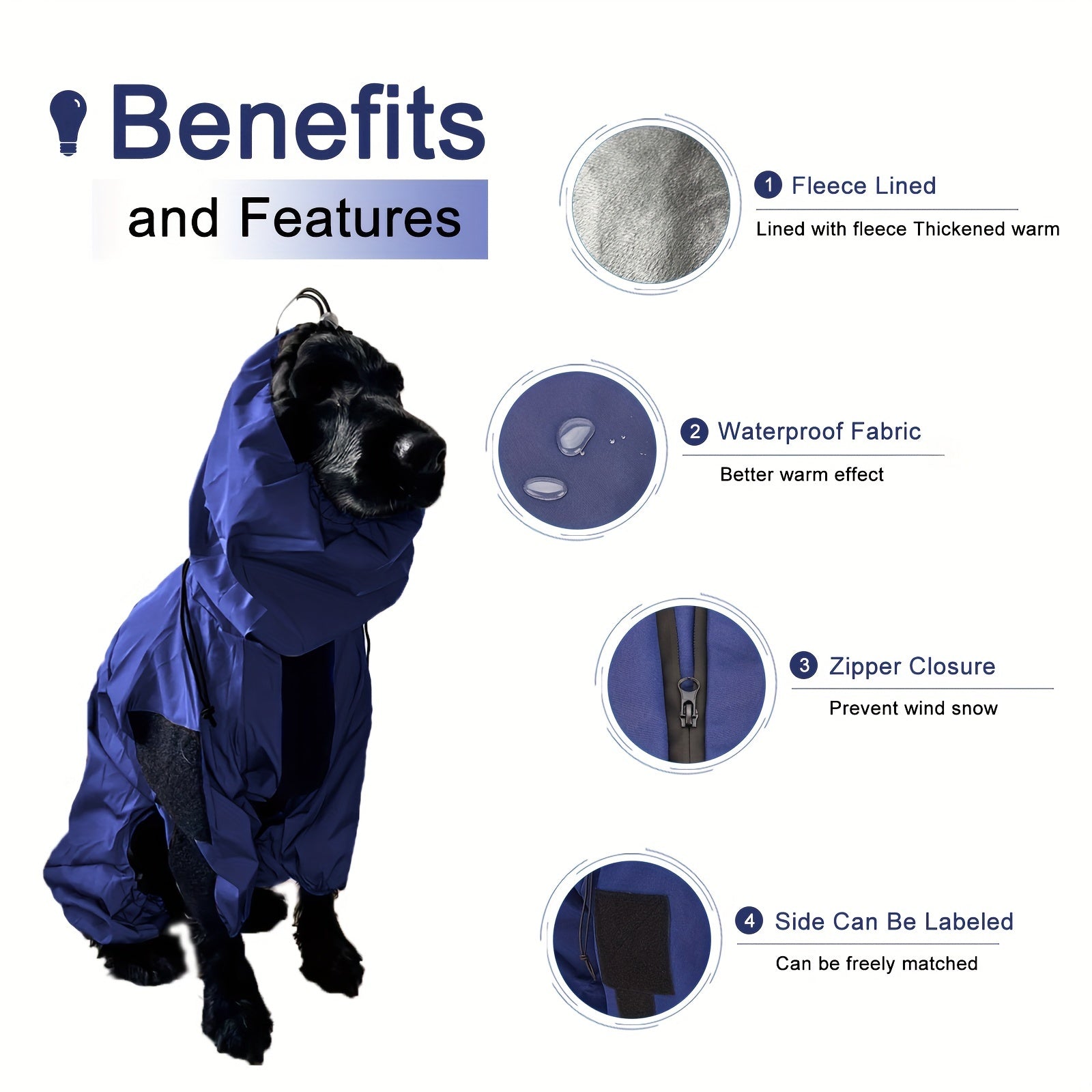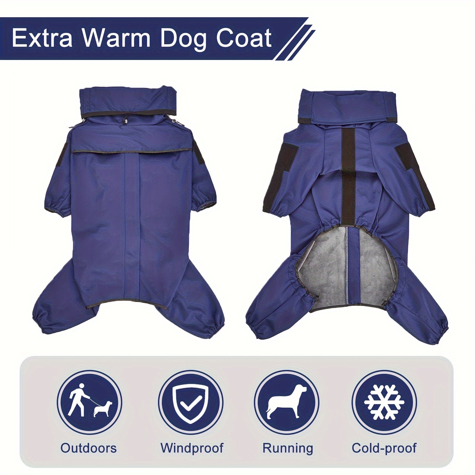 Зимняя собачья куртка с флисовой подкладкой, ветрозащитная и водонепроницаемая, подходит для собак от маленьких до крупных пород. Комбинезон на молнии для домашних животных.