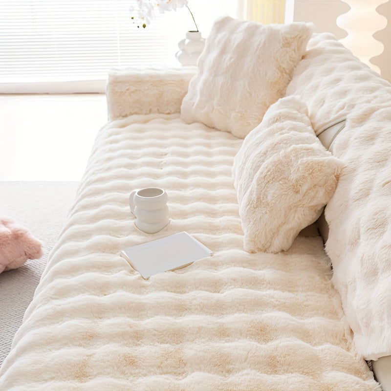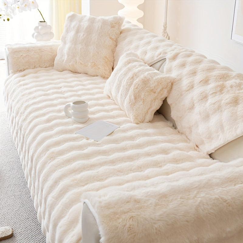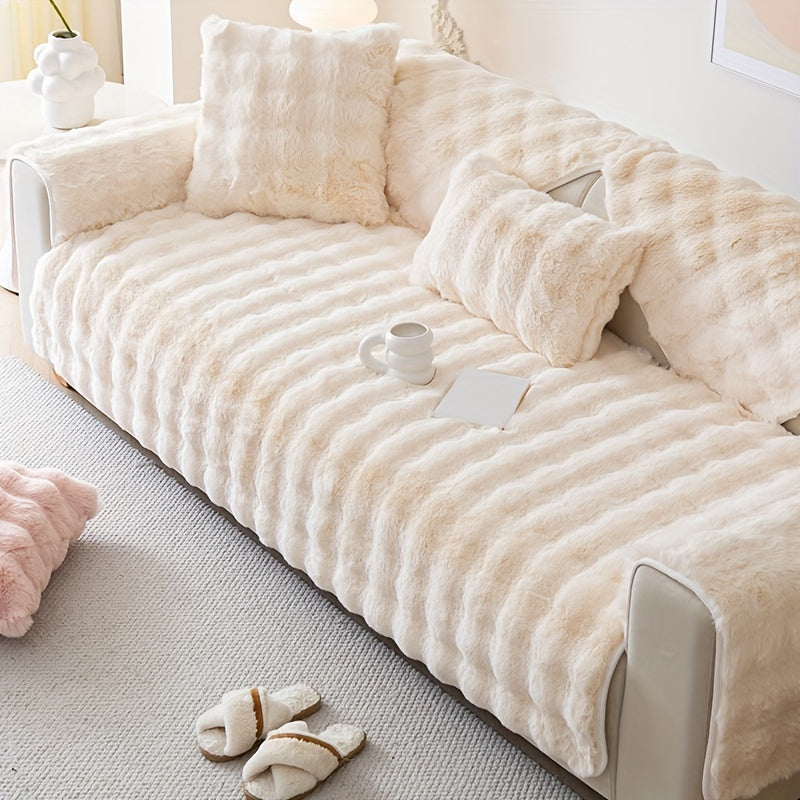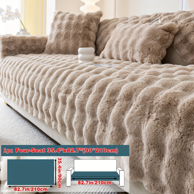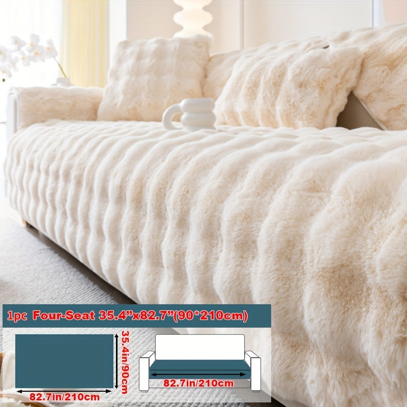 Зимний плюшевый искусственный меховой чехол для дивана с защитой от скольжения, подходит для диванов до 4 мест. Чехол из полиэстера, который можно стирать в машине, для домашнего и офисного декора, станет уютным рождественским подарком.