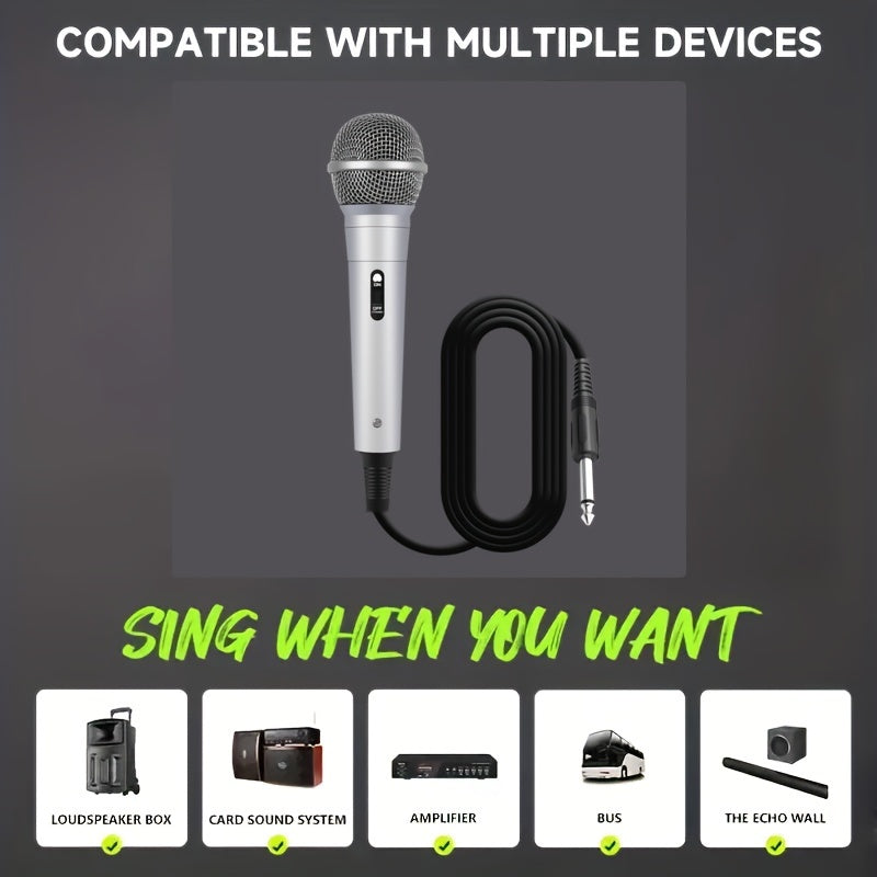 Проводной динамический микрофон для караоке, пения и инструментов с высоким качеством звука и универсальным использованием.