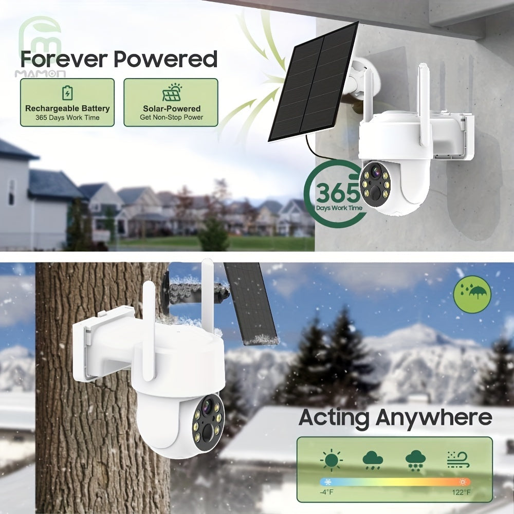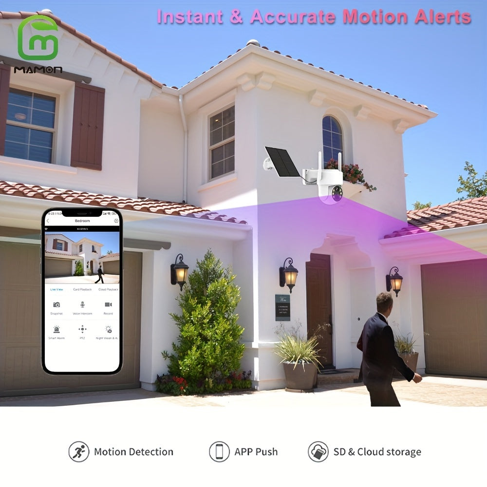 Ulanmagan quyosh energiyali xavfsizlik kamerası 2K kechqurun ko'rish PTZ harakatni aniqlash ikki tomonlama audio