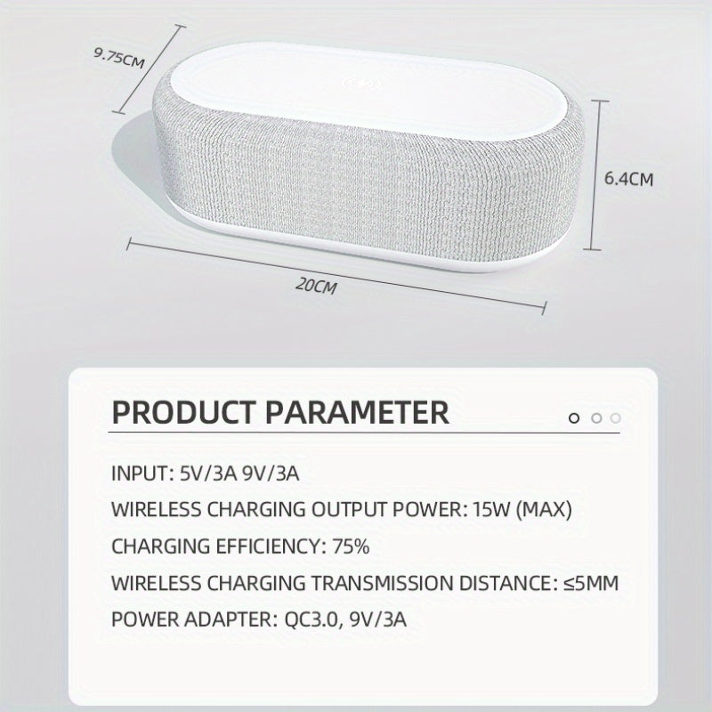 Беспроводное зарядное устройство с будильником, светодиодной подсветкой, термометром и док-станцией для устройств iPhone и Samsung.