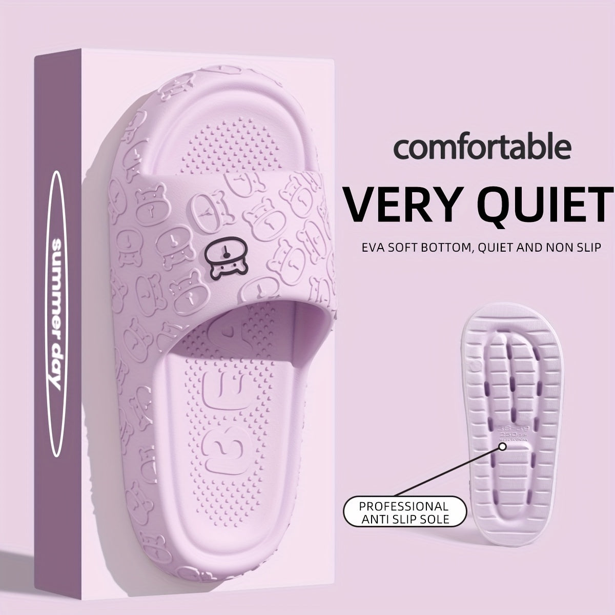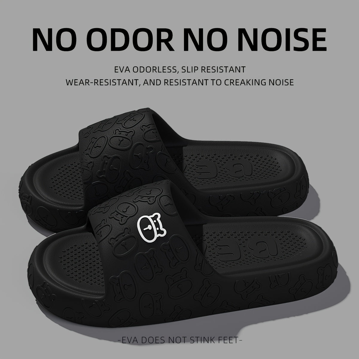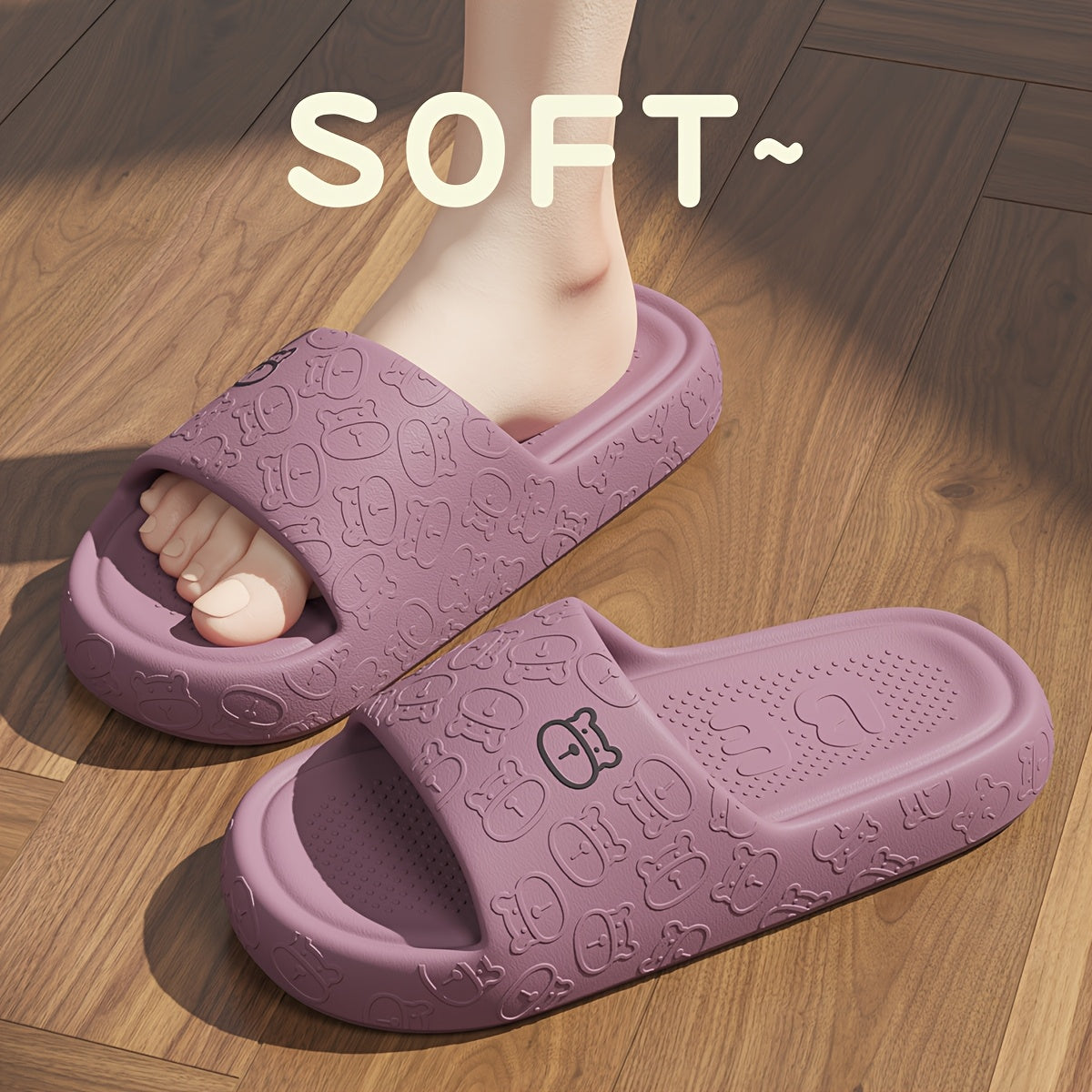 Женские и мужские удобные мягкие тапочки с открытым носком и медвежьим дизайном, для ванной комнаты, EVA, нескользящие
