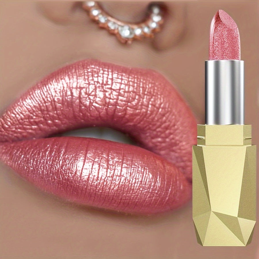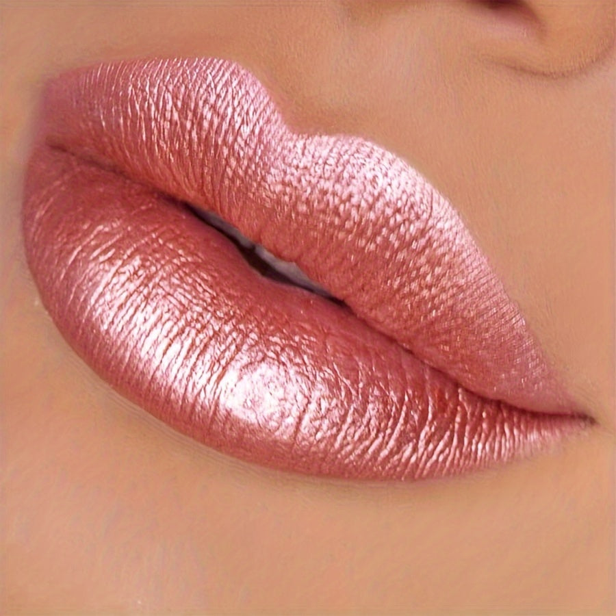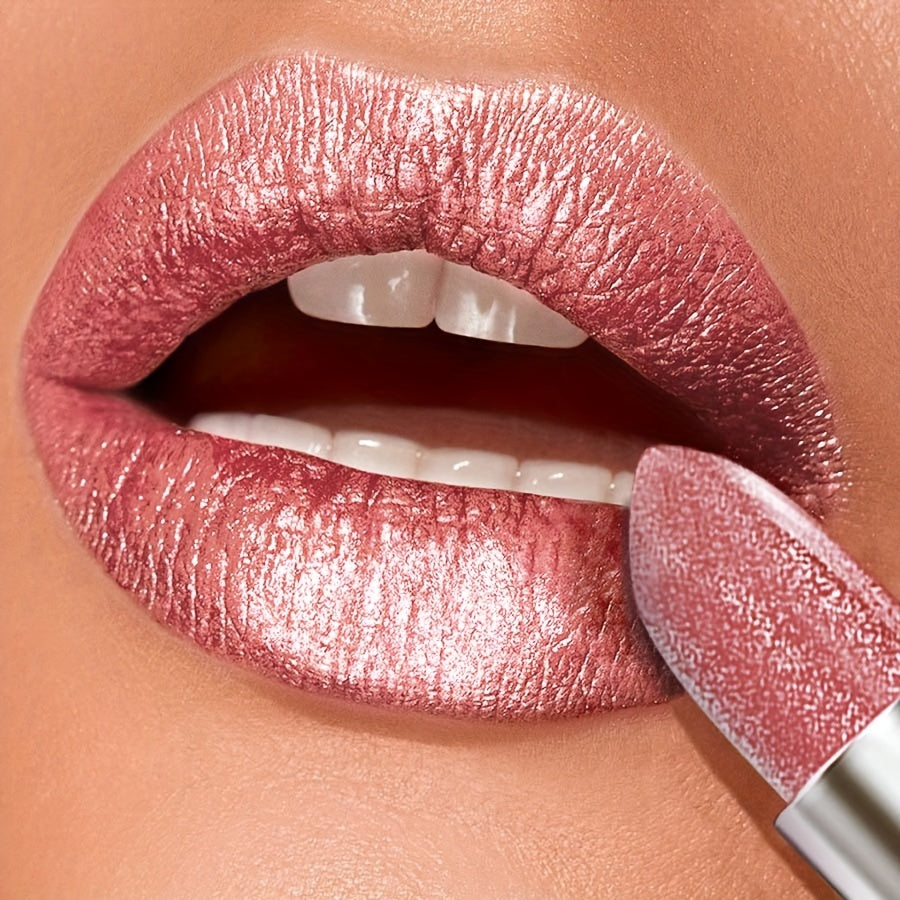 Женская перламутровая помада для губ стойкая увлажняющая металлический розовый блеск